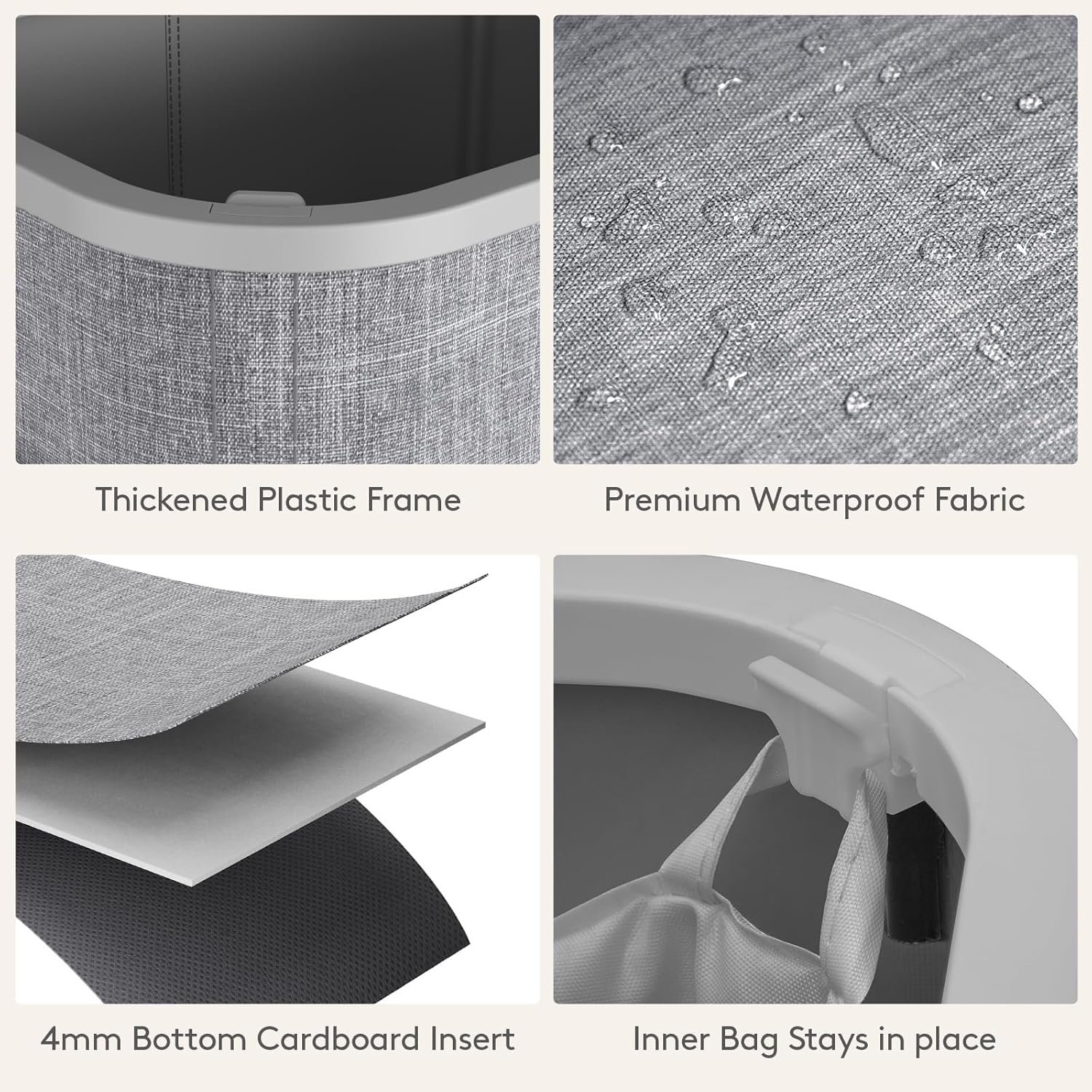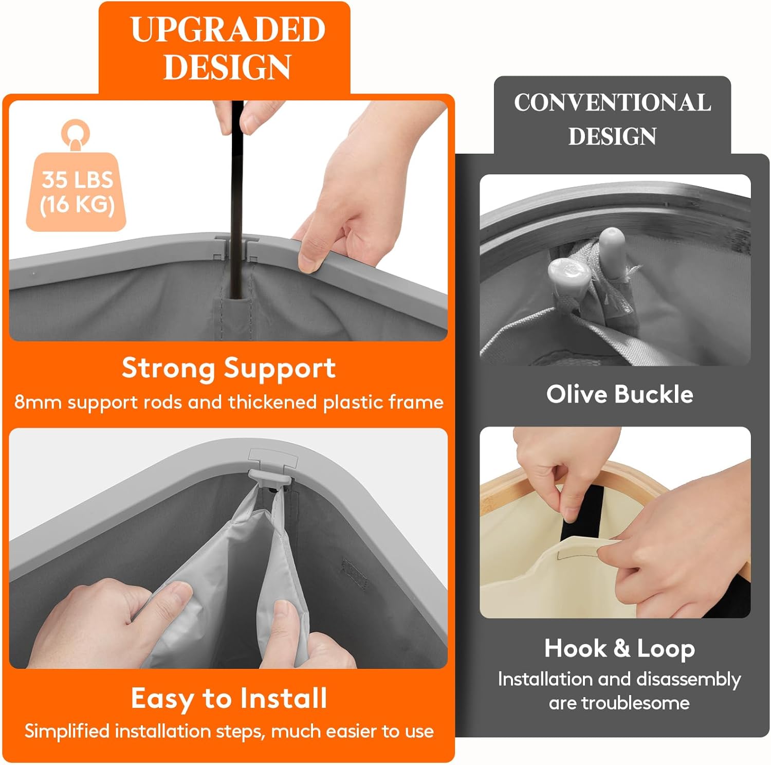 - Sturdy & Stable: Constructed from premium tear-resistant fabric, this hamper includes a plastic frame and four support rods for enhanced stability, supporting up to 16 kg/35 lbs without collapsing or deforming over time