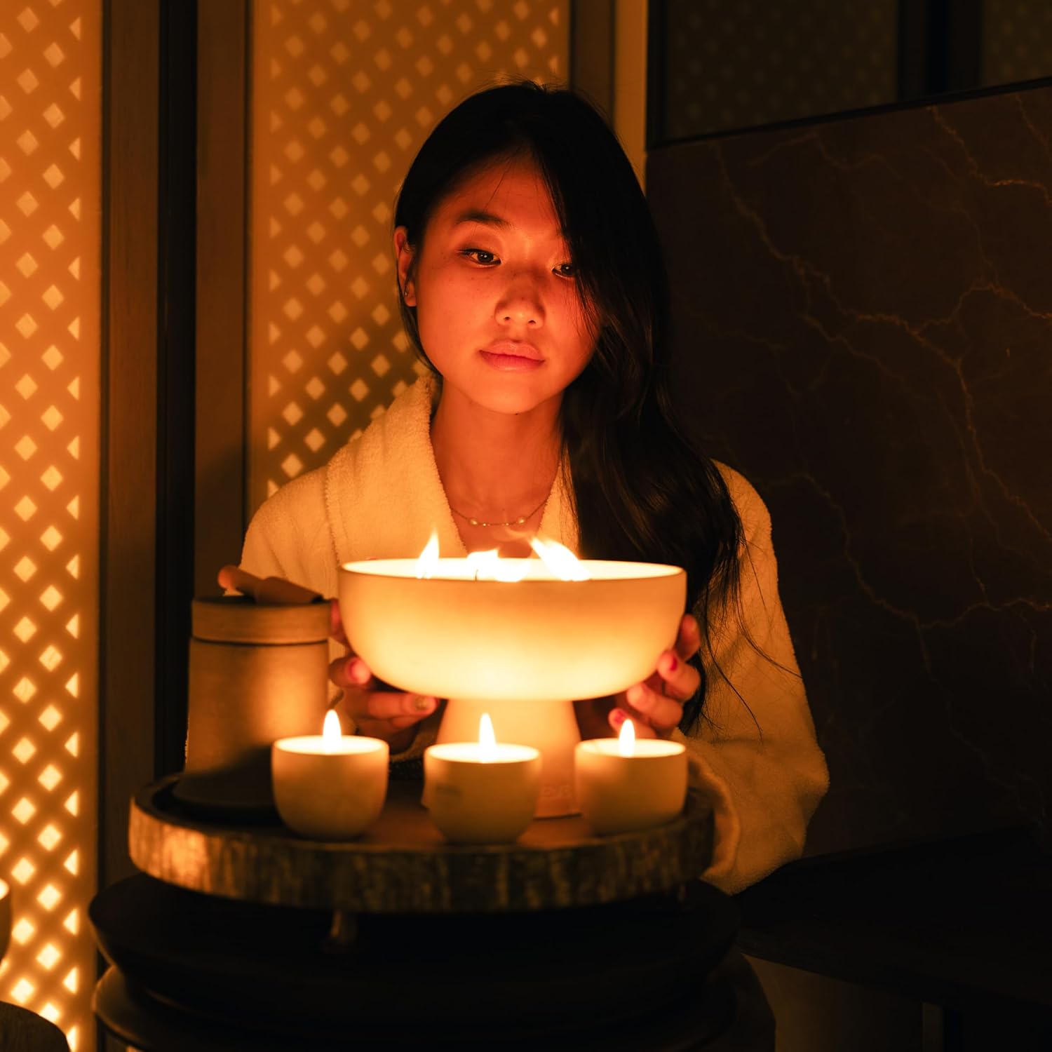 New BLUEME Wellness Candle Wax Refill, Contains Essential Oil, Sustainable, Hand Finished, Hand Poured, Premium, Luxury Ceramic, Natural Cotton Wick (45oz, Osmanthus & Sandalwood)