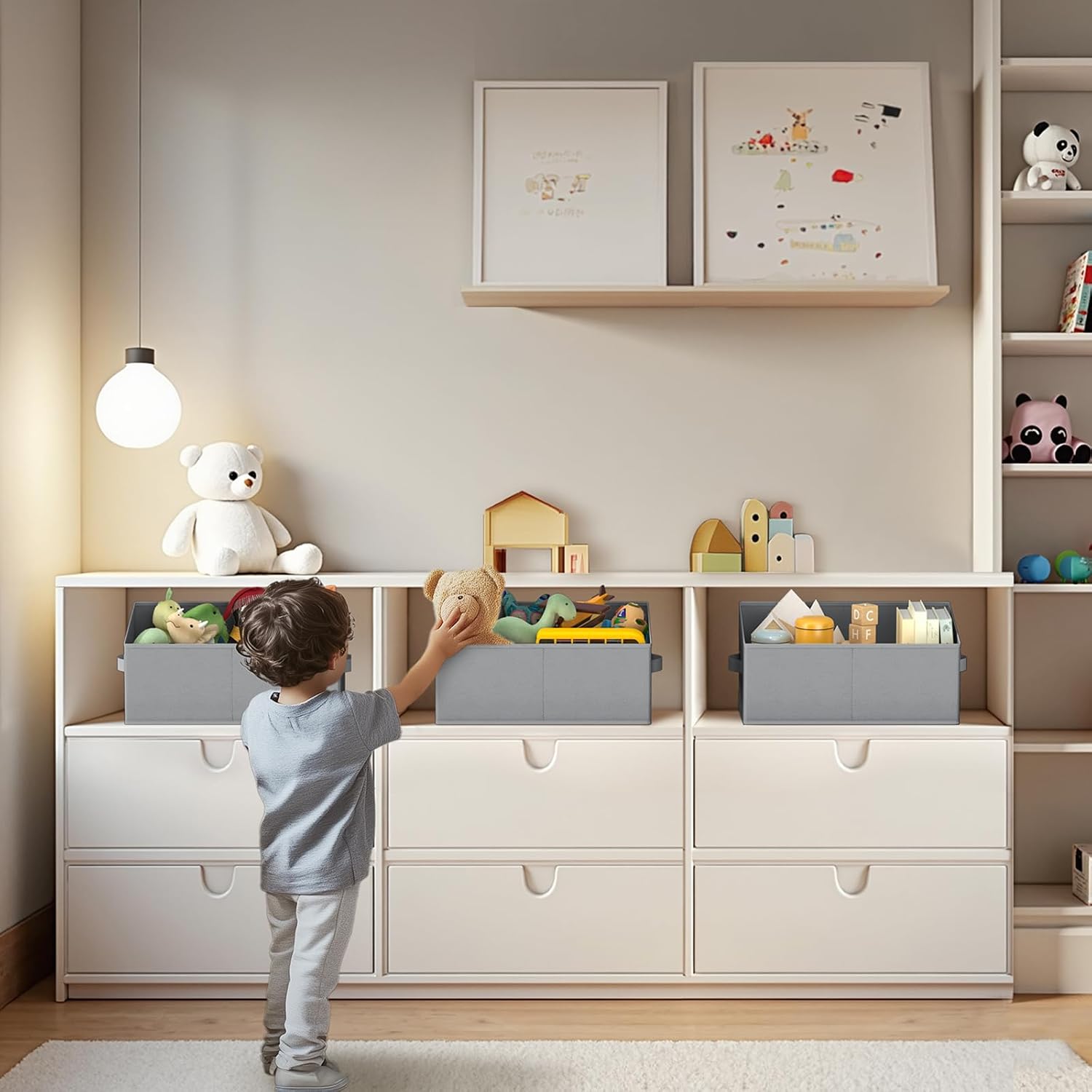 - 【Multipurpose】These closet shelf organizer for organizing towels, winter clothes, toys, magazines, DVDs, office & crafts supplies, etc. these fabric storage bins fits nicely onto shelves, beds, desks in the bathroom, bedroom, or living room
