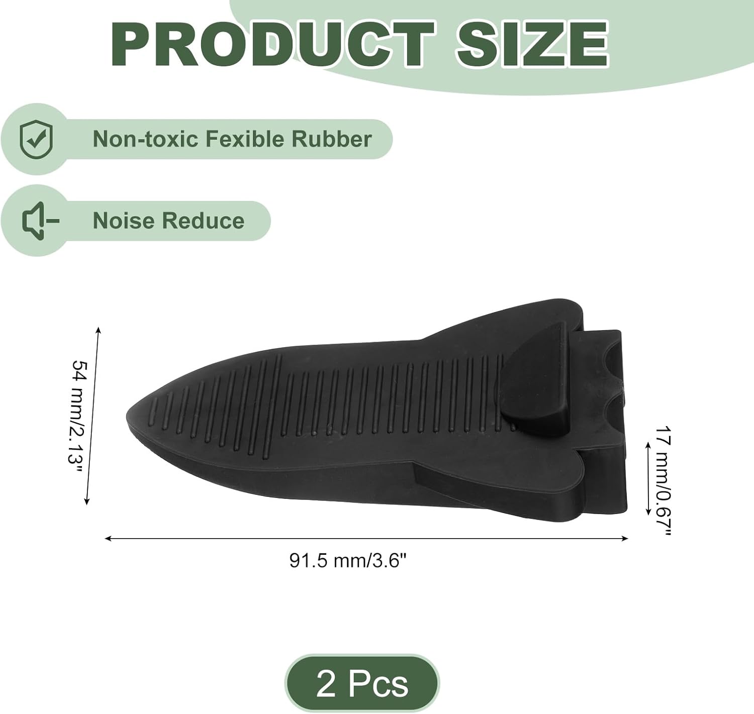 - 【Package and Dimension】Length: 91.5 mm/3.6 inch, Width:54 mm/2.13 inch, Height: 17 mm/0.67 inch, Package Content: 2 Pcs x Door Stoppers.