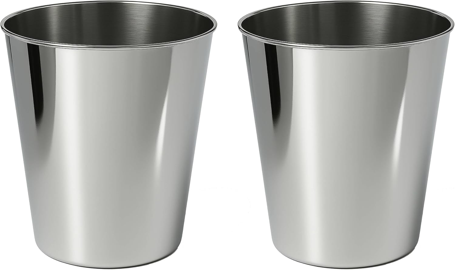 happimess HPM1113D-SET2 Nolan Modern Classic Smooth Steel 2 Gal Waste Bin for Kitchen, Office, Bathroom, Bedroom, Dorm, Polished Steel (Set of 2)