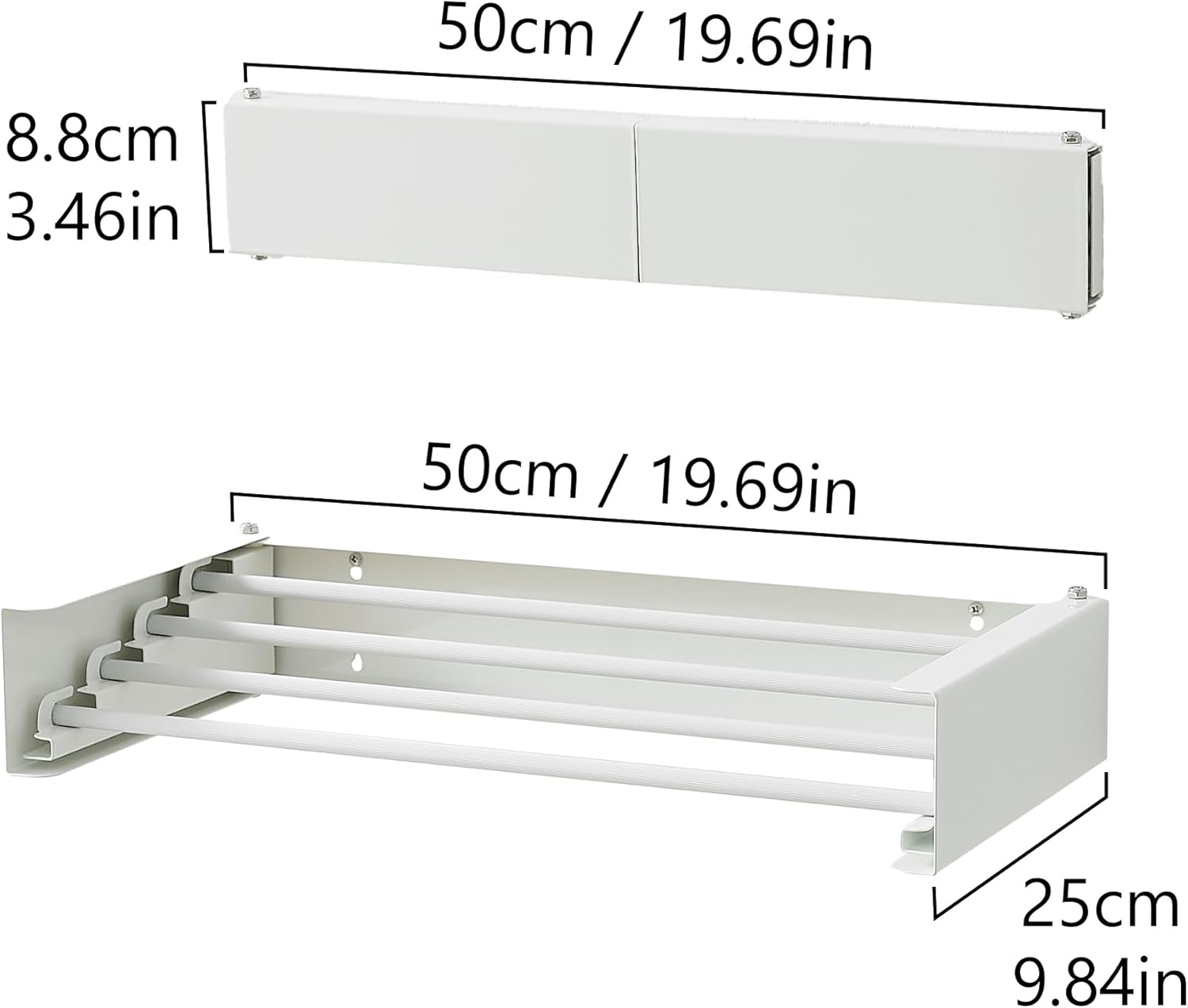 Clothes Drying Rack, Laundry Hanger Dryer Rack, Wall Mounted Drying Rack for Laundry, Foldable Drying Rack Indoor Outdoor, 19.7" Wide, 4 Aluminum Rods, 40 lb Capacity (White 19.7")
