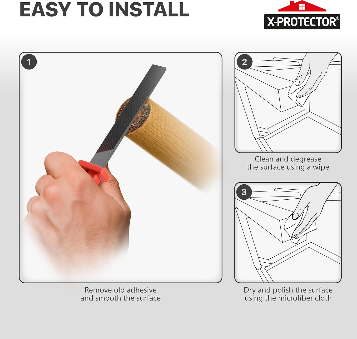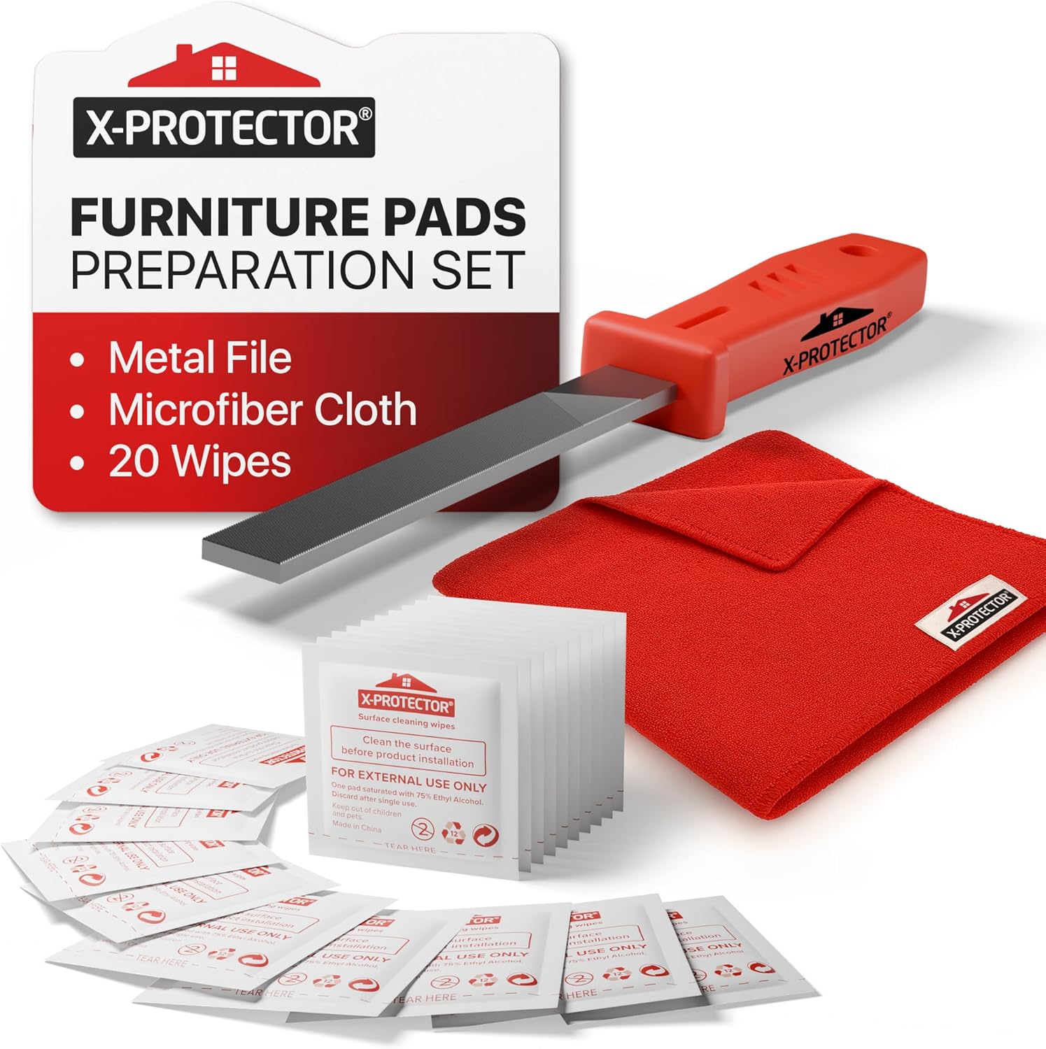 X-Protector Furniture Pads Preparation Set - Includes Metal File, Microfiber Cloth & 20 Cleaning Wipes - Furniture Surface Prep Kit for Easy Installation of Furniture Pads!