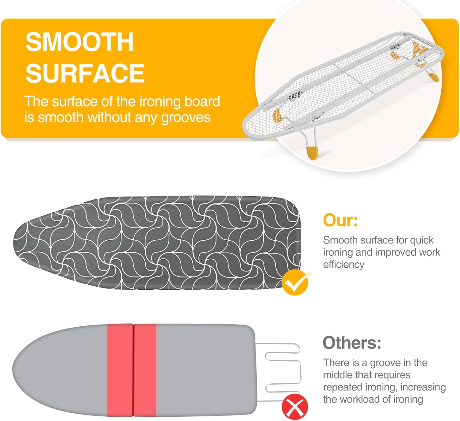 - Sturdy & Foldable Design – Our tabletop ironing board features foldable legs with non-slip foot caps for stability during use and easy storage, saving space.