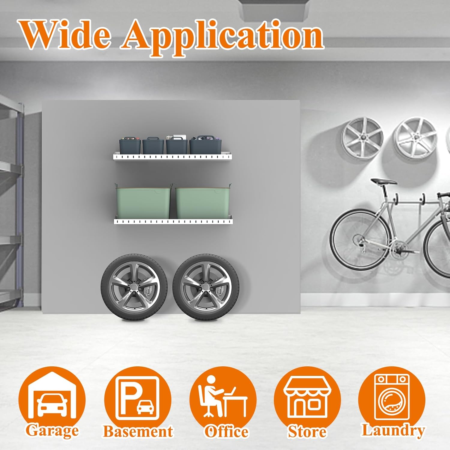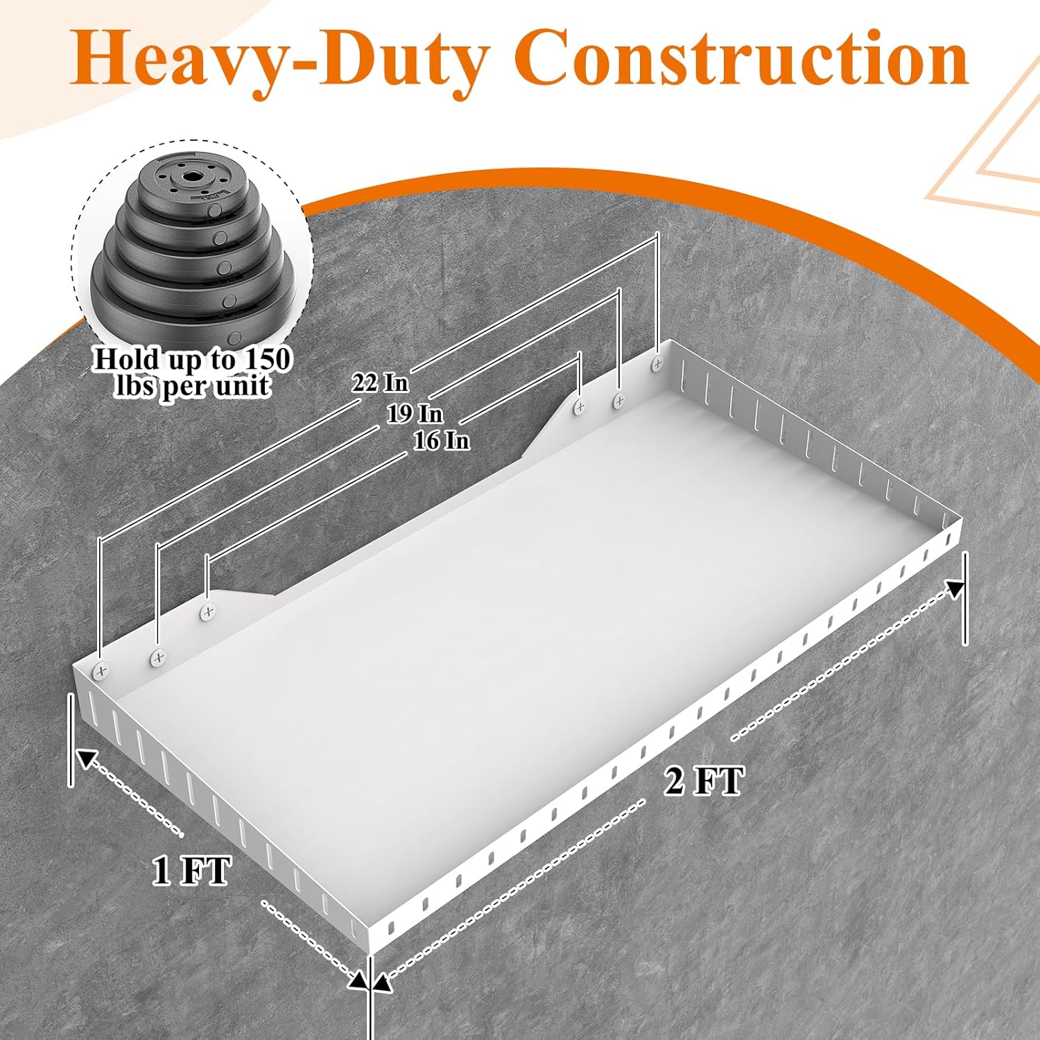 PEKGRIL 2 Pack Garage Wall Shelf, 1X2 Ft Heavy Duty Garage Shelving, Wall-Mounted Storage Shelves for Laundry Room, Closet, Holds Up to 150 Lbs, White