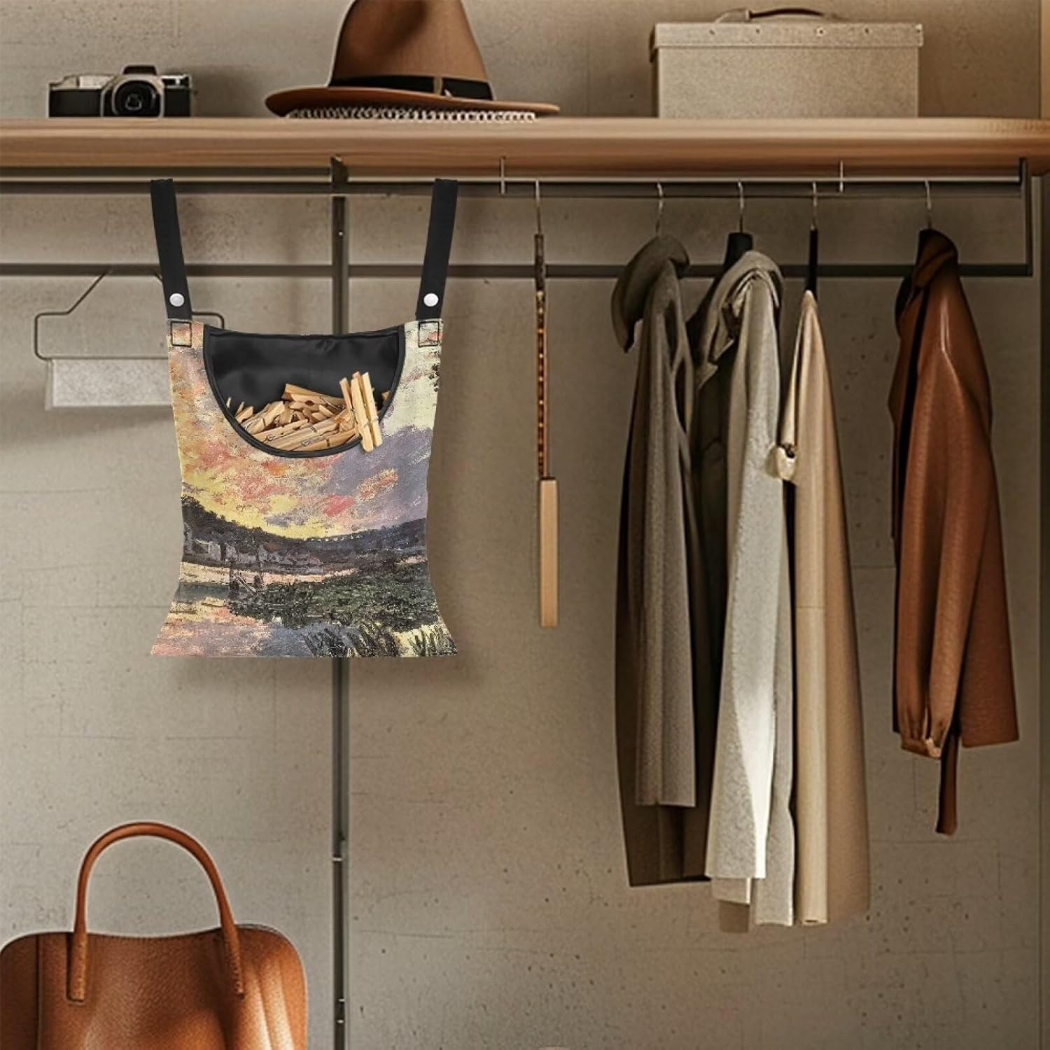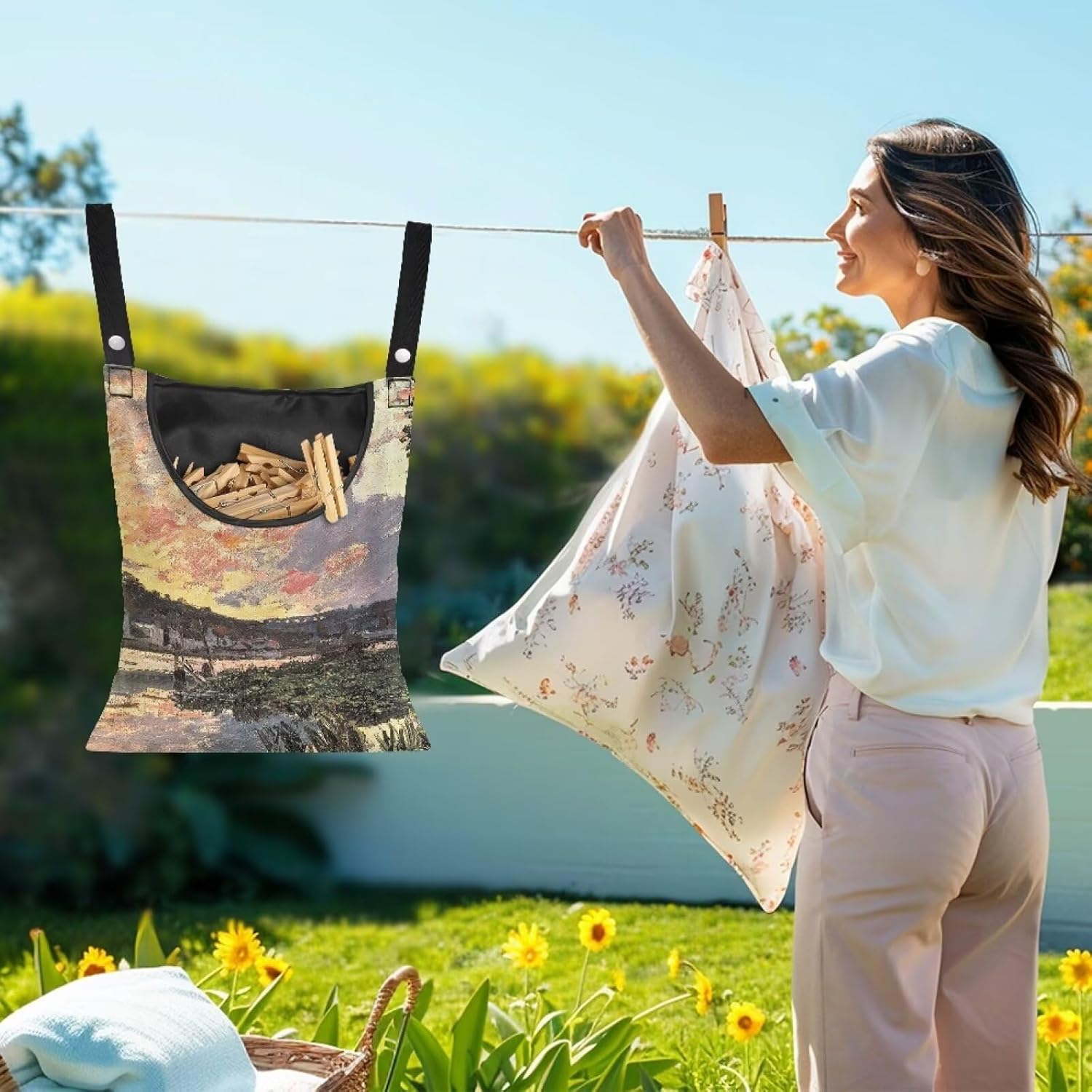 All-Weather Clothespin Holder Bag - Bennecourt, Soleil Couchant Durable Outdoor Storage Solution for Clothes Pins - Features Windproof Design & Secure Snap Closure - 14.5"x12" Size