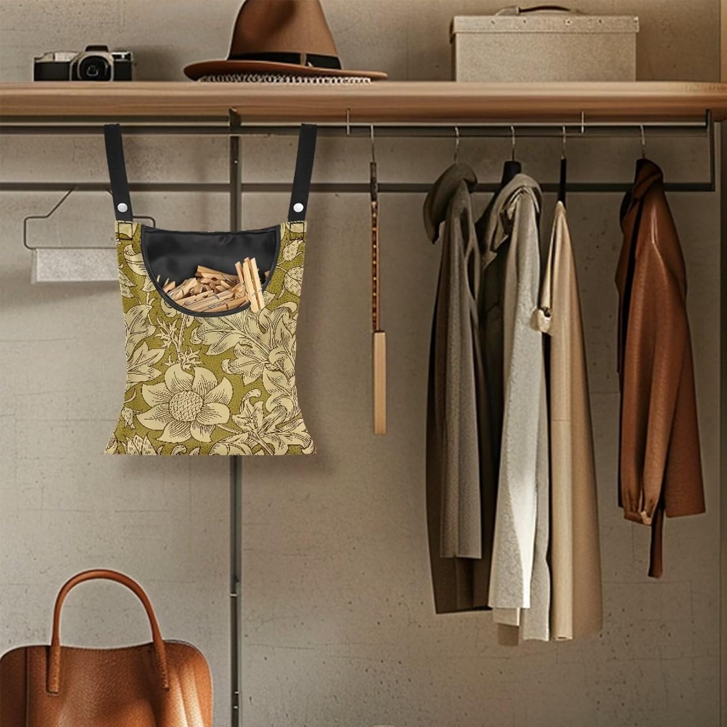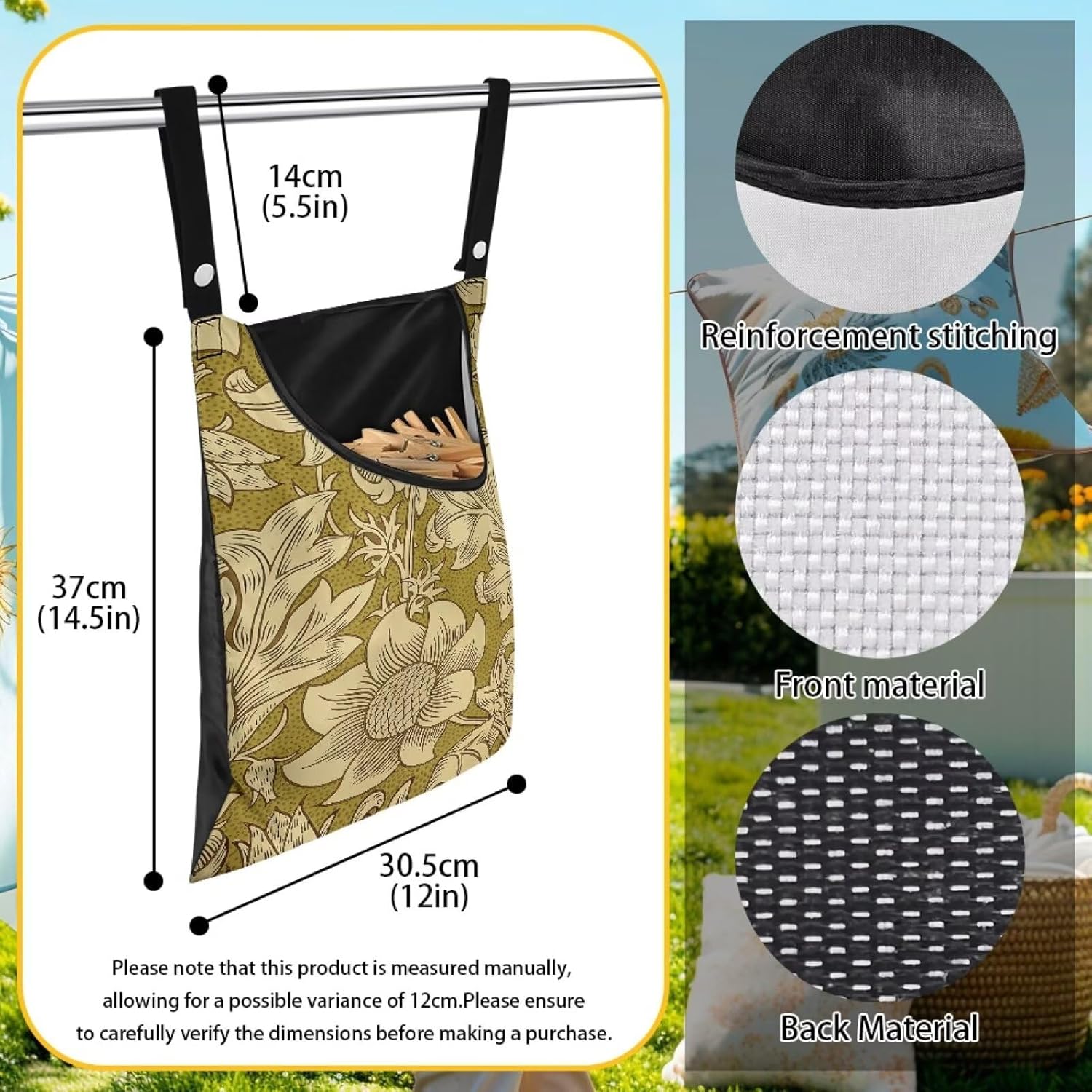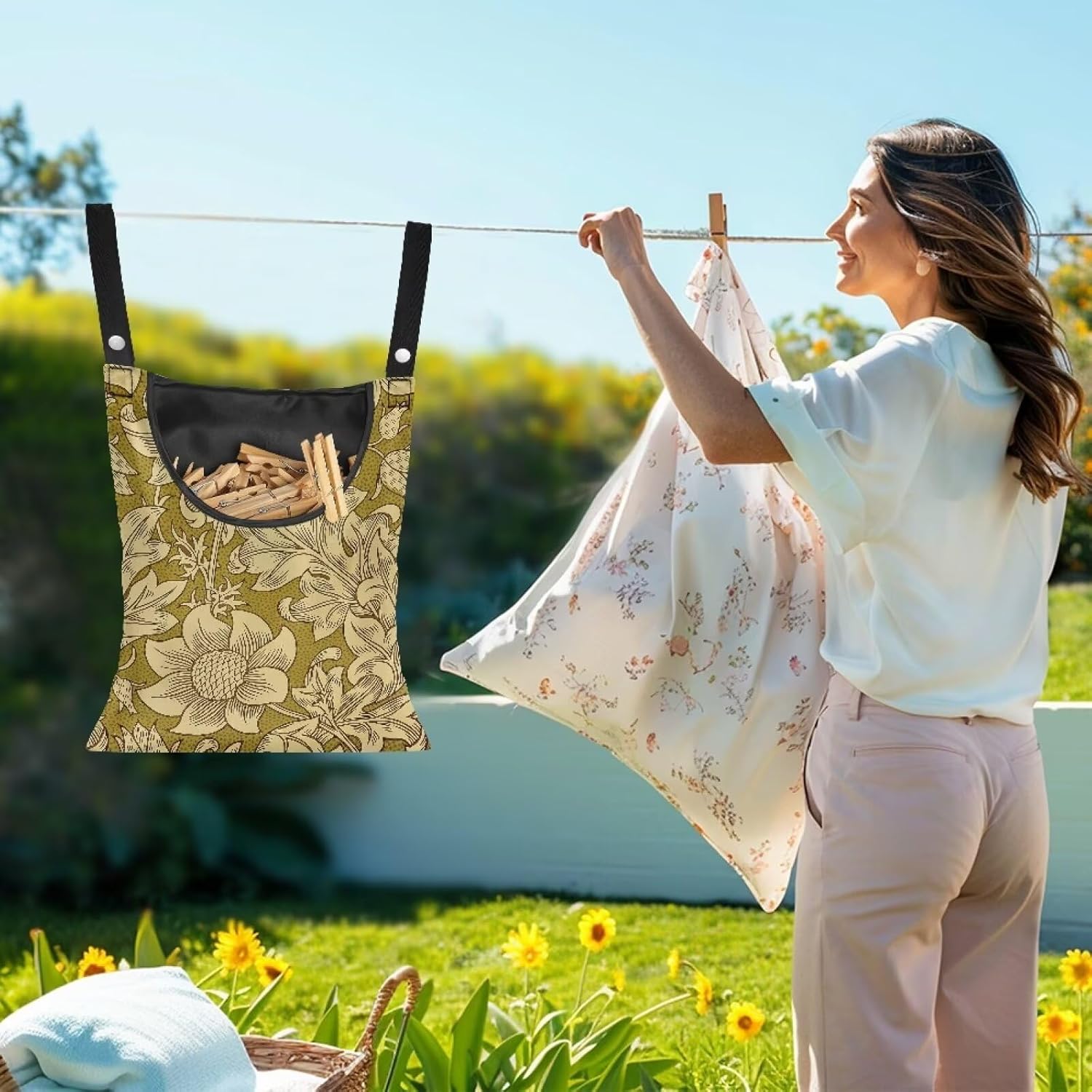 William Morris Works Print Clothespin Holder with Large Opening 14.5"x12" - Multipurpose Outdoor Storage Bag - Durable Polyester Construction with Double Stitched Seams Laundry Centers