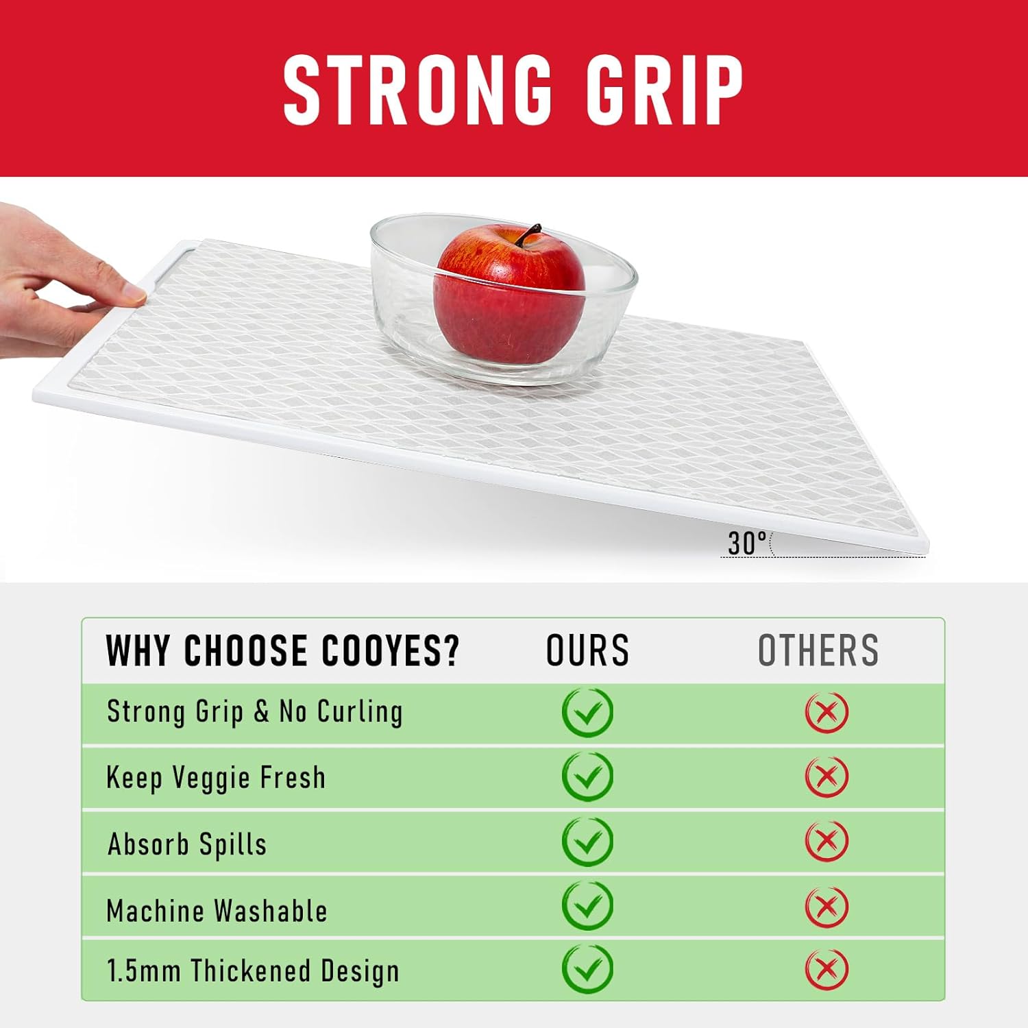 - Non-slip, Non-adhesive: Refrigerator liners have non-slip silicone dots on the back of the liner, which provides superb grip and keeps the liner in place without sliding around or curling like plastic refrigerator liners; The surface of the refrigerator liner is made of non-stick fabric that prevents the items on it from moving around