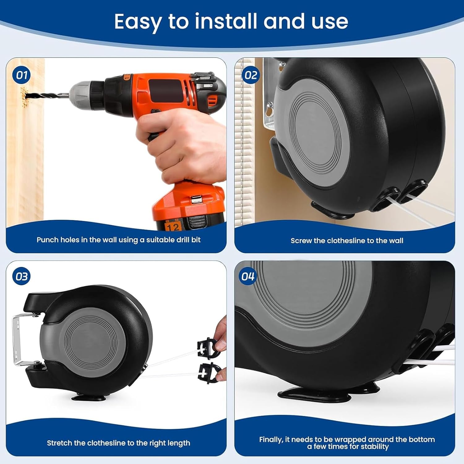 - Fast & Easy Installation – Install in minutes using the included screws, wall anchors, and clear instructions. Works on most wall types—tile, wood, or concrete. Just make sure both sides are level for smooth retraction.
