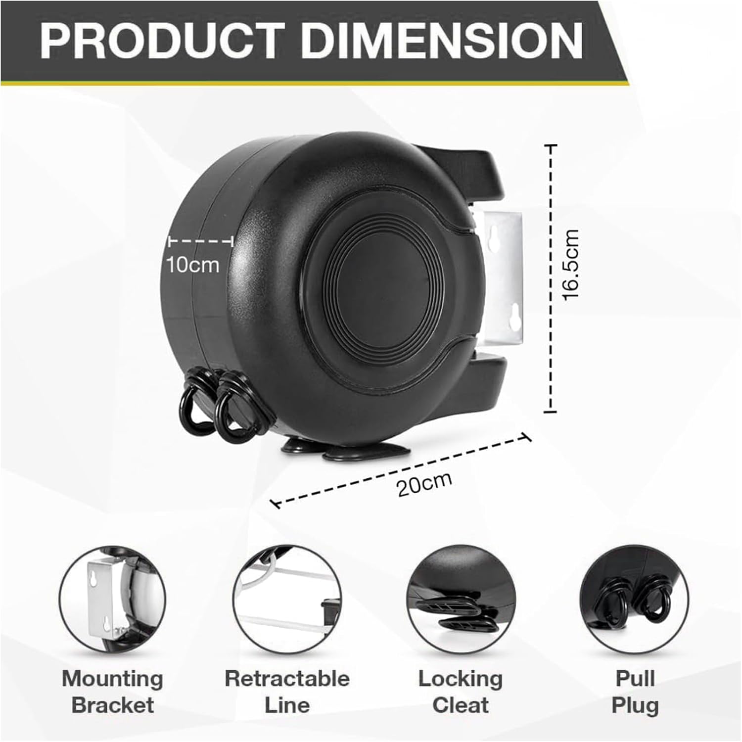 - Smooth Retraction & Easy Locking Mechanism – Pull the line to your desired length and secure it with the simple lock button. When done, release tension gently for smooth, tangle-free retraction. No jamming, no snapping—just easy operation every time.