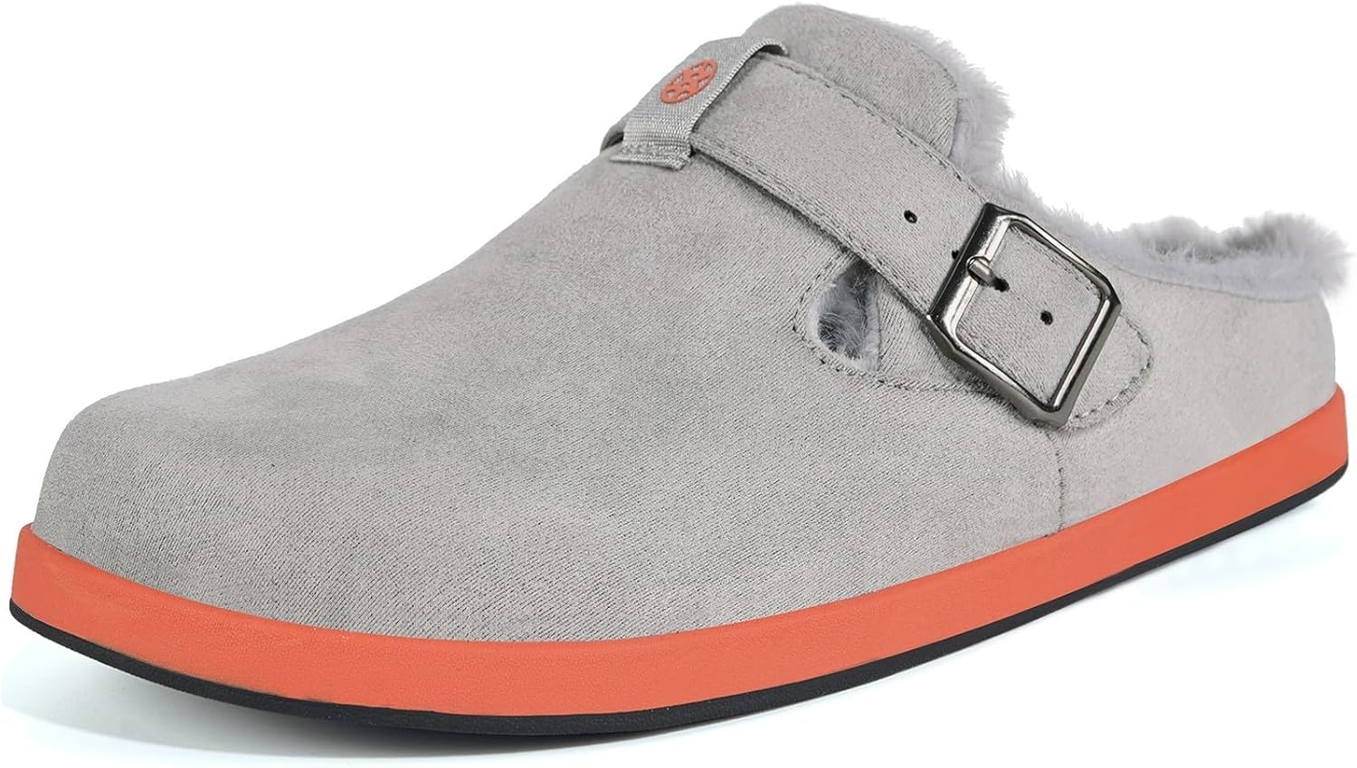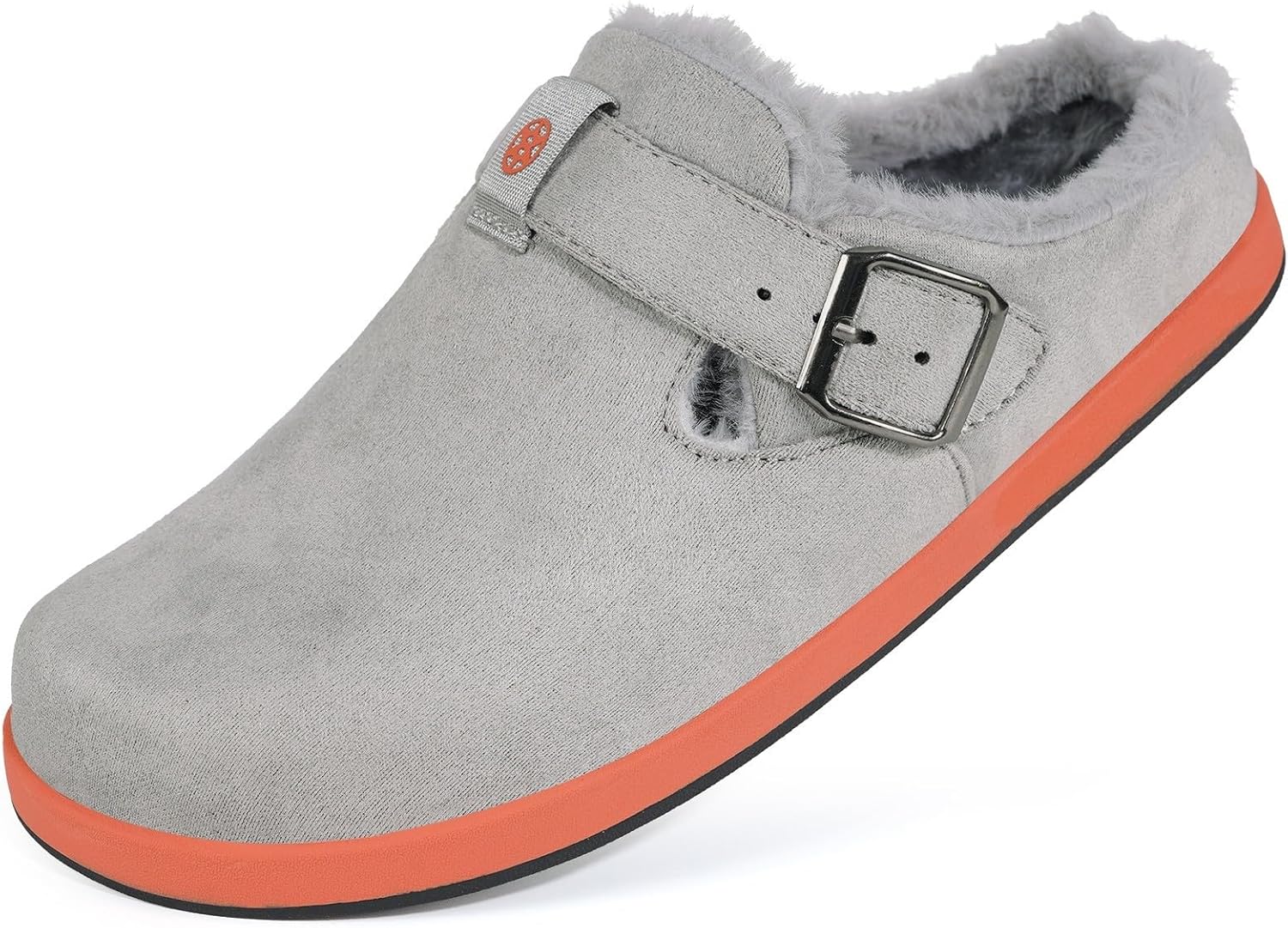 Fur Lined Clogs for Women Men Suede Winter Slippers Arch Support Slip on Mules Potato Shoes with Removable Cushion Footbed Warm Home House Shoes