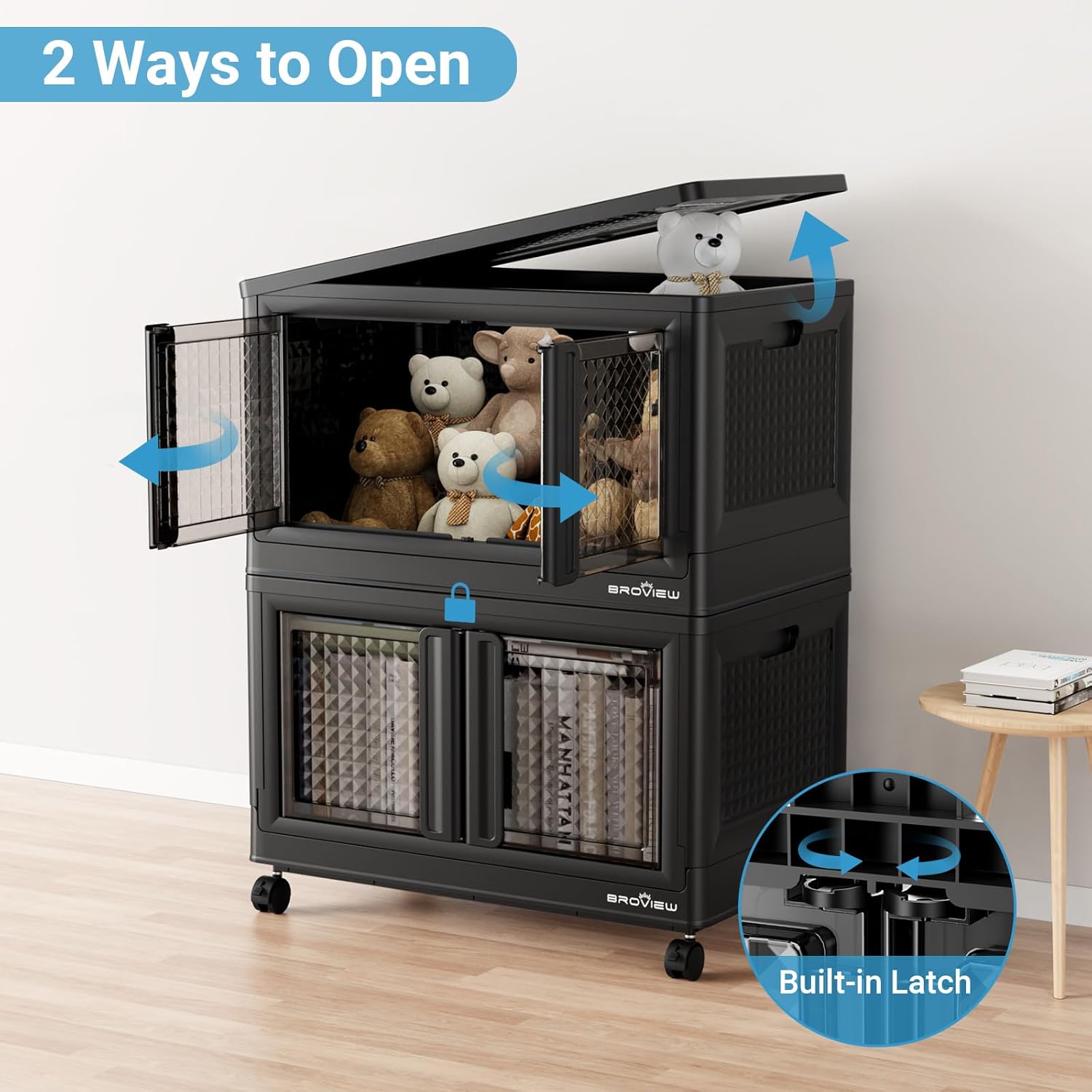 - 【Unique Textured Design & Large Capacity】Stylish foldable bin with exclusive textured patterns elevates any space. Measures 25" L x 15.5" W x 16.5" H(per box), holding 25 gallons (100 quarts), supporting 110 lbs (50 kg). Reinforced lid and walls maintain stability under stacked items. Smooth-access front doors open effortlessly when needed.