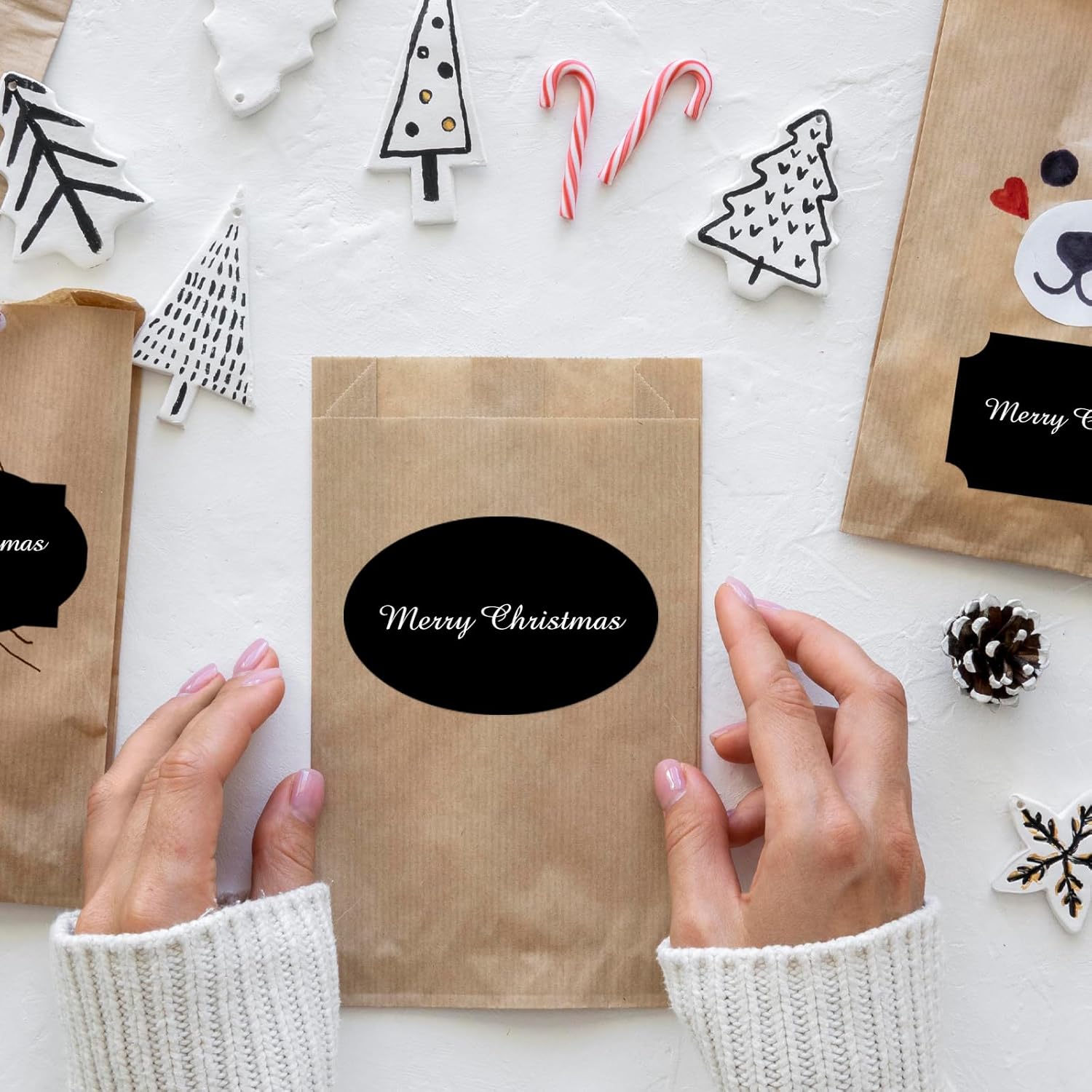 Black Labels Stickers, 250 PCS 3" x 2" Fancy Shape Sticker for Storage Box or Food Jars Holiday Present Christmas Gift Tags