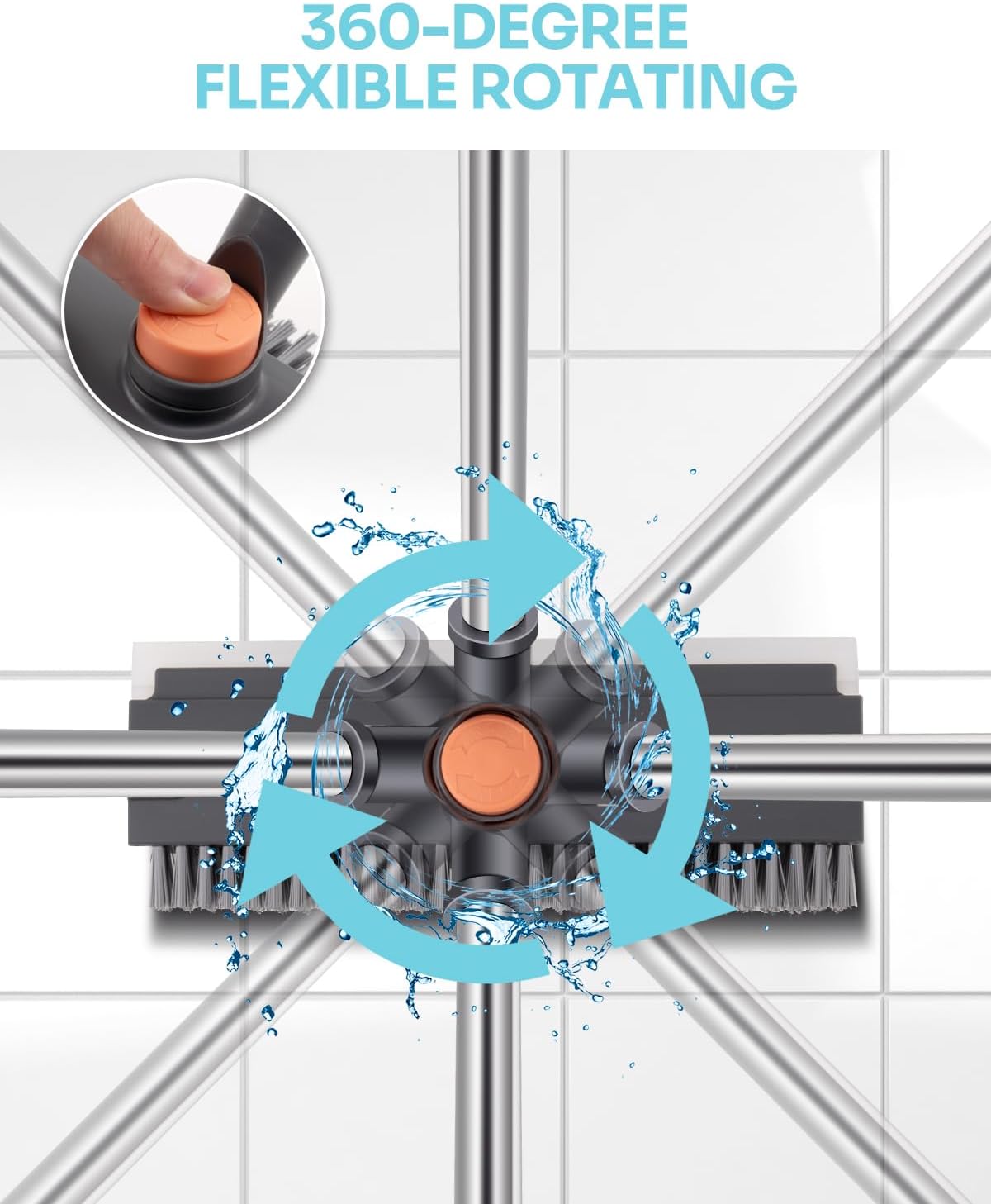 - 【Multi-Angle Adjustable】With a 360° rotating head and adjustable angles, this scrub brush gives you complete control to effortlessly clean floors, walls, corners, and hard-to-reach spots.