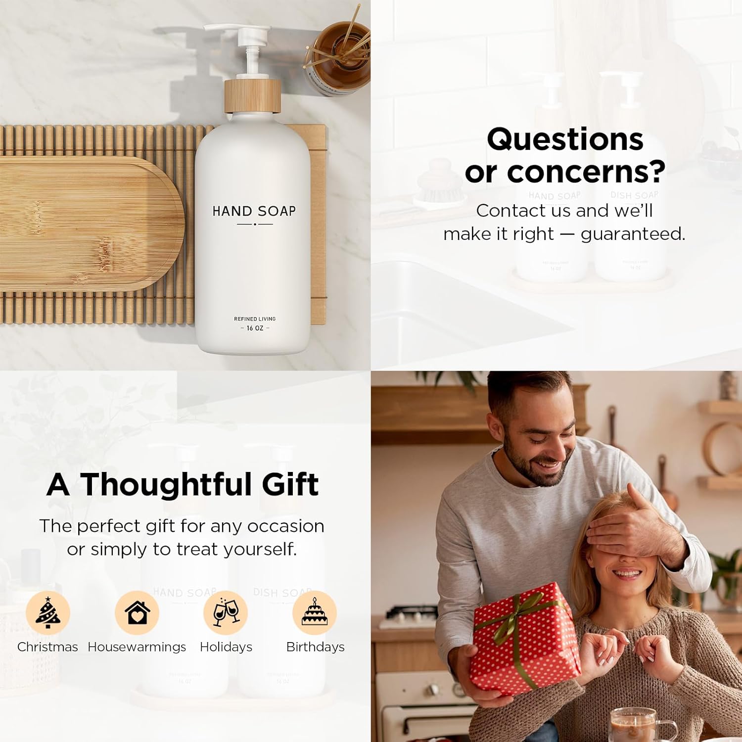 - 【FITS ANY DECOR】 – From luxury and farmhouse to modern minimalist, this elegant hand soap dispenser set blends effortlessly with your kitchen or bathroom style.