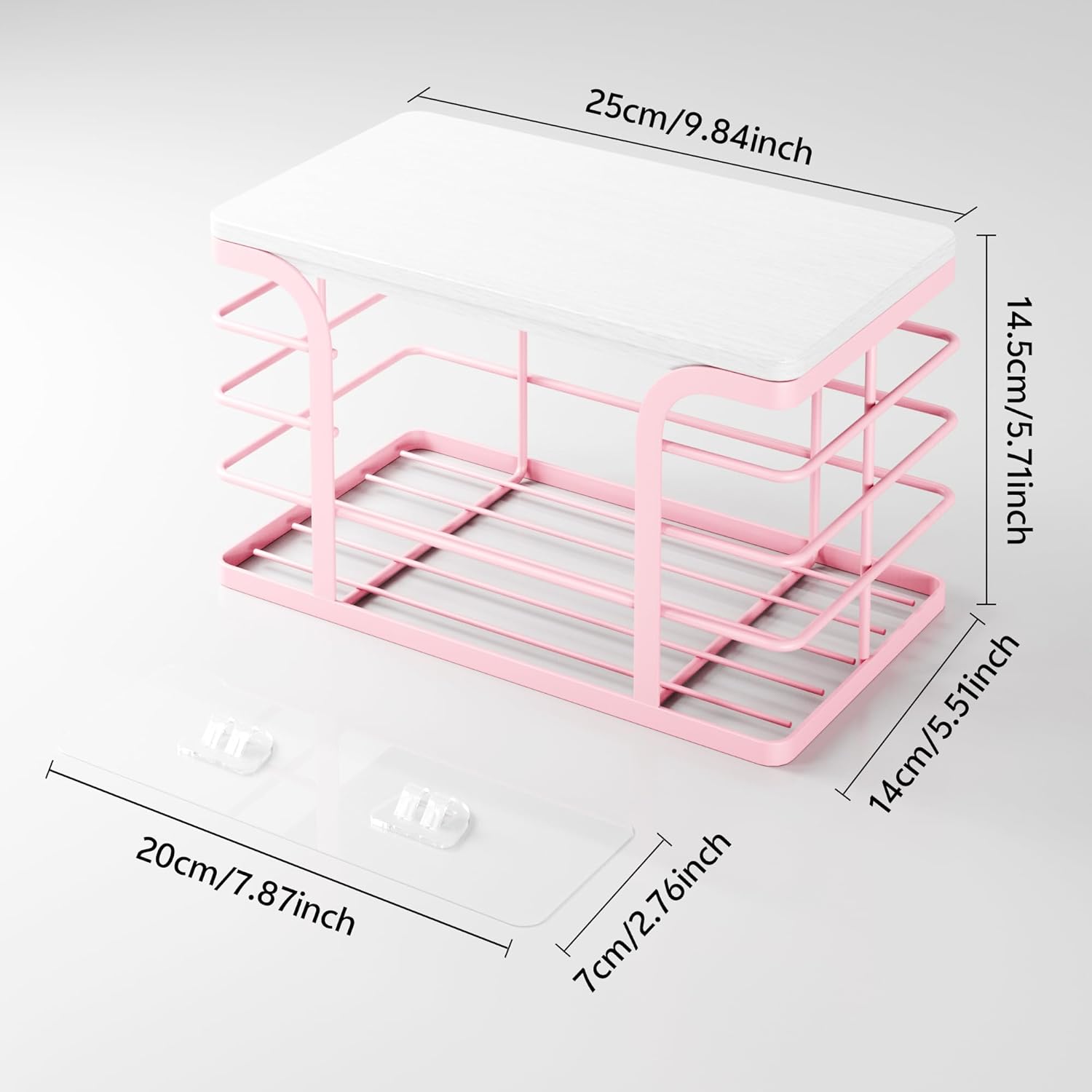 Small Grocery Bag Holder,Wall Mount Trash Bag Holder Dispenser with Bamboo Top,Suitable for Garbage Bags of 100 Rolls under 13 Gallons,Pink