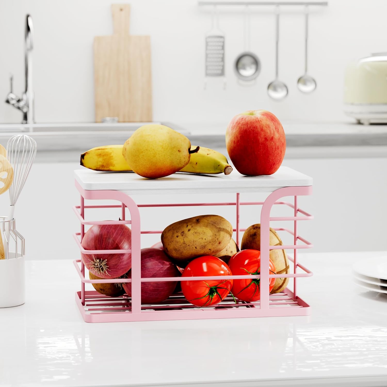 - Wide Applications:Standard size basket frame and bamboo top design make it perfect for multiple uses. Use it on kitchen countertops, on cabinet shelves and in the pantry to store fruits, vegetables, snacks, etc. Also suitable for under the sink in the kitchen and bathroom, laundry room organization and storage, etc