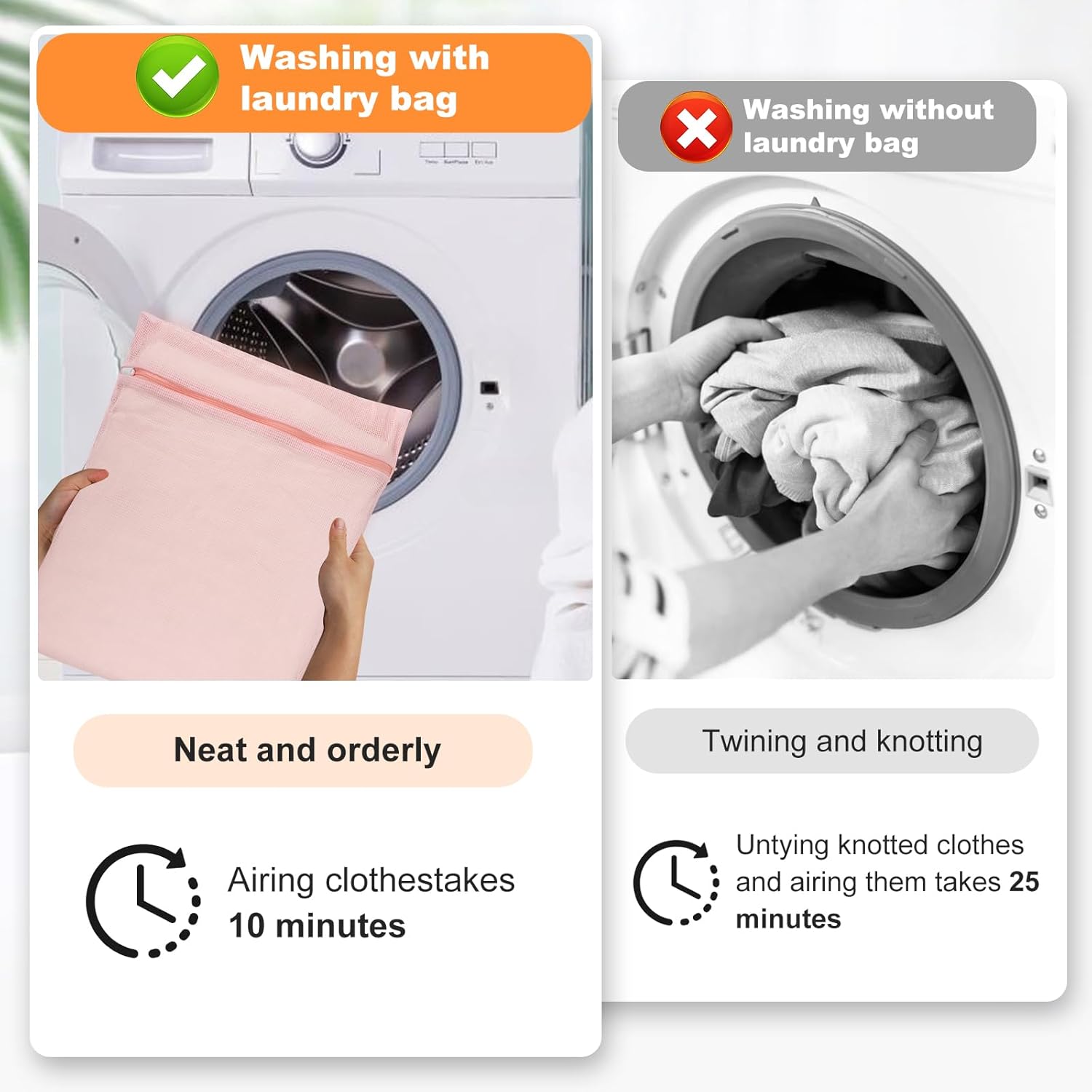 - 【Important Note】 Soft fabric laundry bags should be filled to approximately 70% capacity. Do not overfill. Washing machines achieve optimal cleaning performance at 70% capacity. Do not fully zip the mesh laundry bag to the bottom to prevent the bag from detaching. Additionally, cotton laundry bags have a certain degree of softness and elasticity, and wrinkles may form during packaging, but this is a normal occurrence. These wrinkles will naturally disappear when the bag is used or stored. We place a high priority on product quality and customer rights.