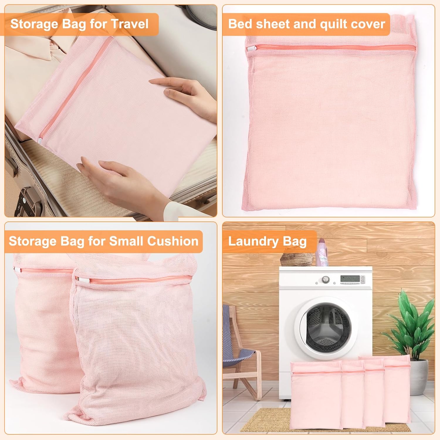 - 【 Packaging List 】PINK 4 PIECES COTTON MESH ZIPPERED LAUNDRY BAGS, LARGE AND STURDY: Our 14.96-inch x 17.71-inch laundry bags are made of pure cotton for long-lasting use!