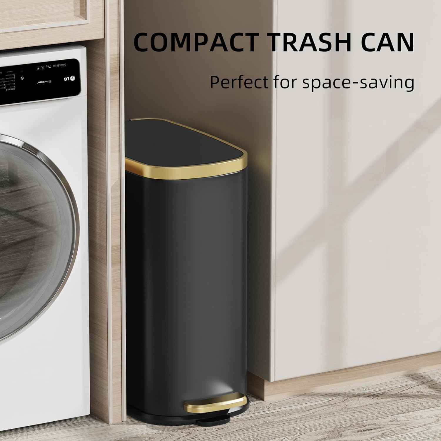 - 【Soft Close & Stay-Open Lid】Enjoy silent, gentle closure with the built-in damper—no loud slams to disturb family or pets. The lid stays open at 90° for hands-free trash disposal, making it easy to replace bags or clean. Enjoy a quiet, mess-free experience in any room.