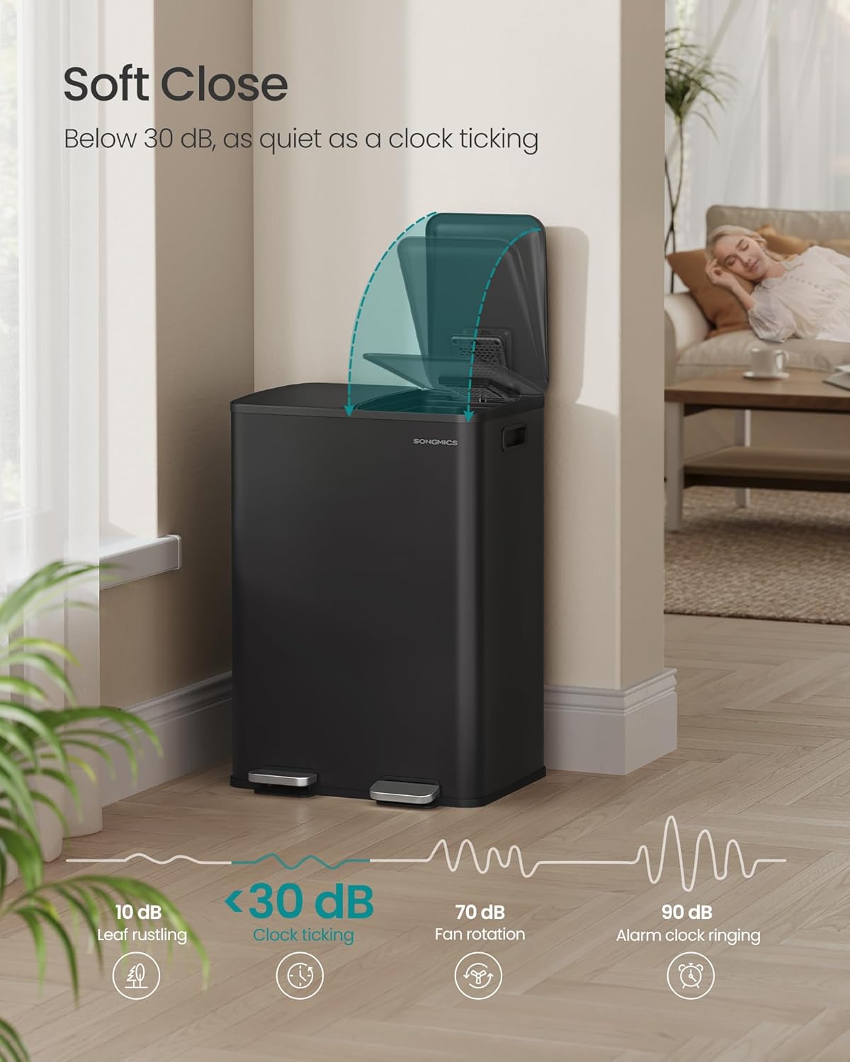 - Spacious: With a 2 x 8 gallon capacity, this garbage bin offers plenty of space for waste sorting. 15 trash bags are included. The trash bin is compatible with SONGMICS 8-gallon trash bags (Code H)
