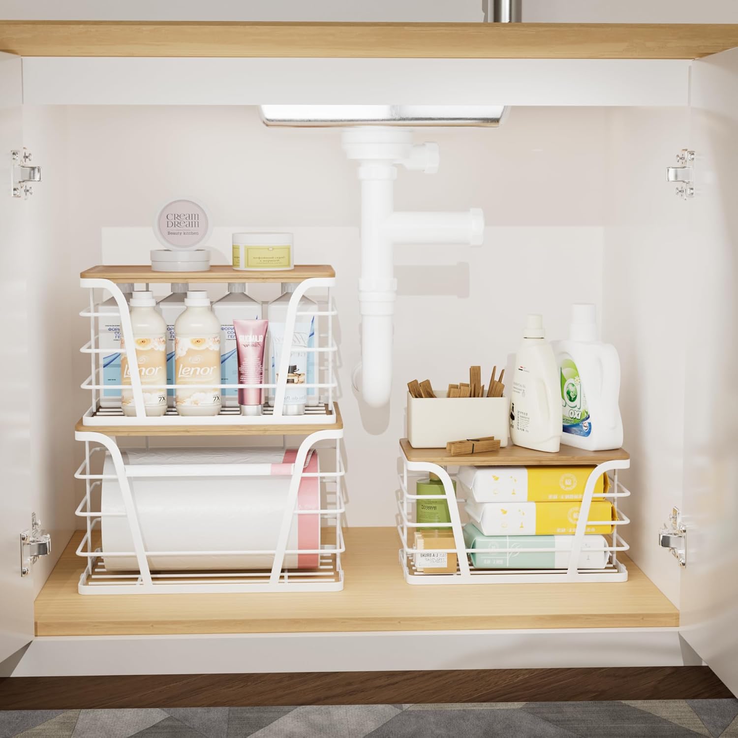 3 Pack Stackable Laundry Room Organization,Trash Bag Dispenser Under Sink, Countertop Organizer, Kitchen Sink Accessories,White
