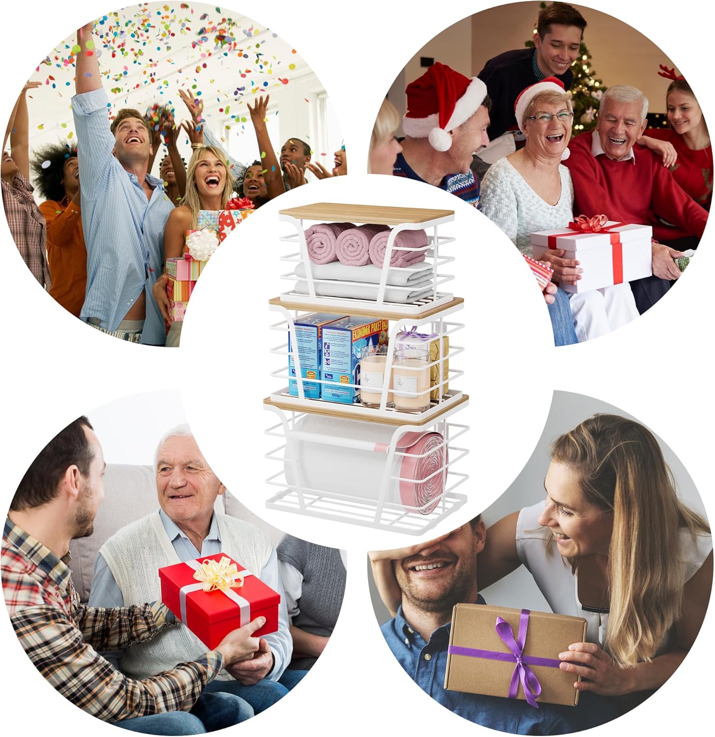 - Multi-Functional: Perfect for storing trash bags, grocery bags, onions, potatoes, towels, dryer balls, etc., in kitchens, laundry rooms, under sinks, cabinets, pantries, bathrooms, RVs—use it anywhere your imagination takes you. The bamboo top holds spice bottles or doubles as a small cutting board.