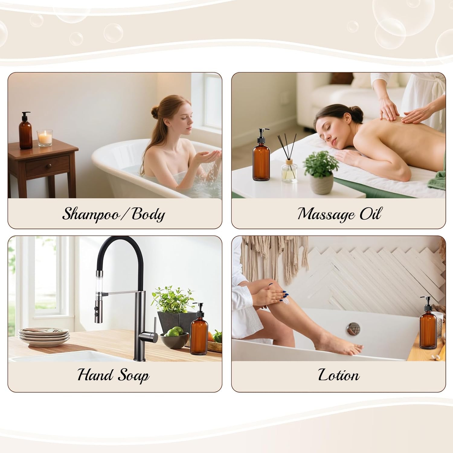 - Premium UV-Blocking Glass Pump Bottles: Crafted from thick amber glass, each refillable glass soap bottle blocks UV light to preserve the integrity of sensitive liquids. A nice choice for anyone looking for glass pump bottles for essential oils or organic skincare.