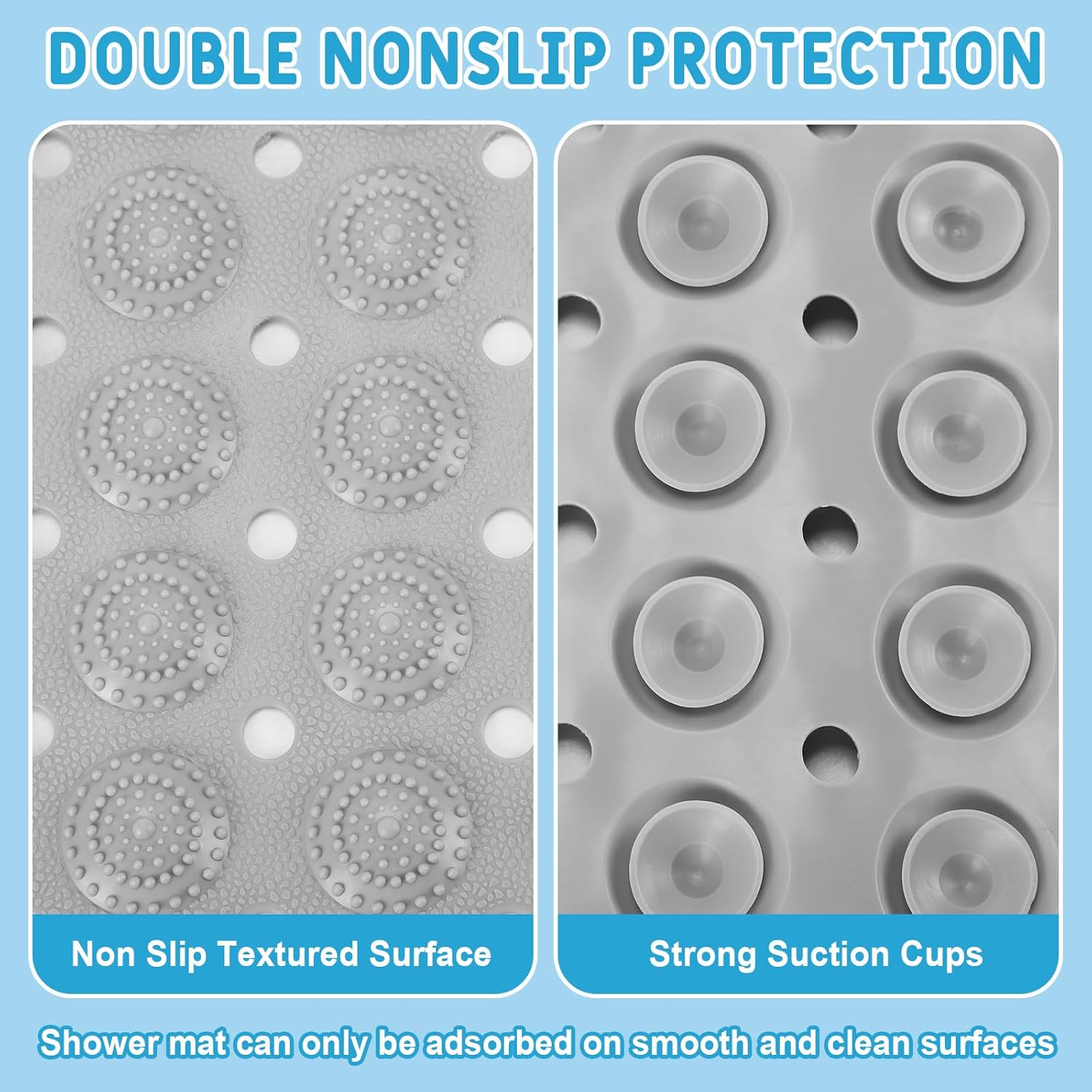 - Comfort Design: the pebble patterned surface delivers gentle foot massage and improves grip, with flexible TPE material that cushions each step; Unlike hard plastic mats, our textured surface remains comfortable barefoot while preventing soapy water accumulation