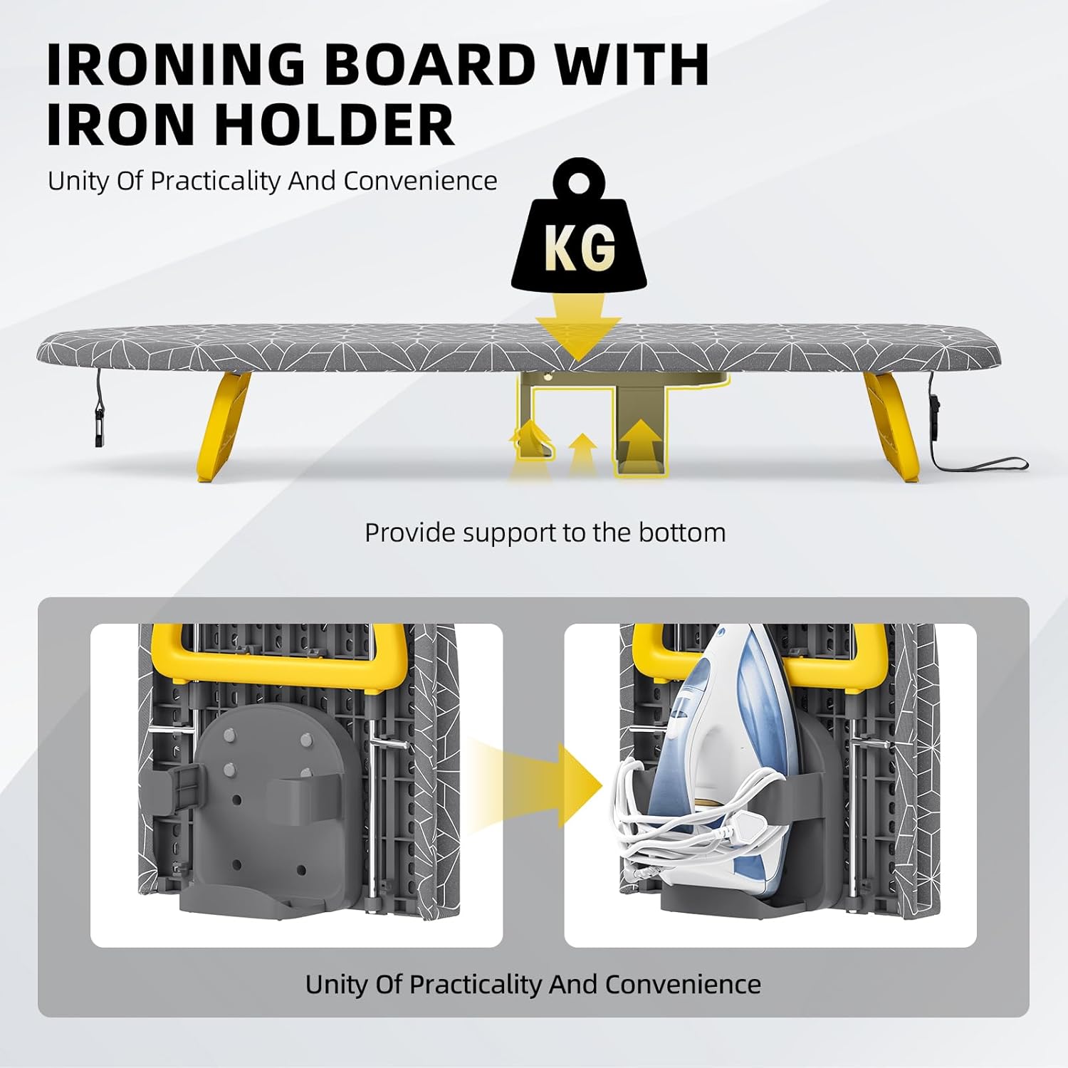 - [Iron Storage]This small ironing board tabletop comes with a built-in iron holder, helping store the iron conveniently and keep the room organized.The table top ironing board makes your room look neat.