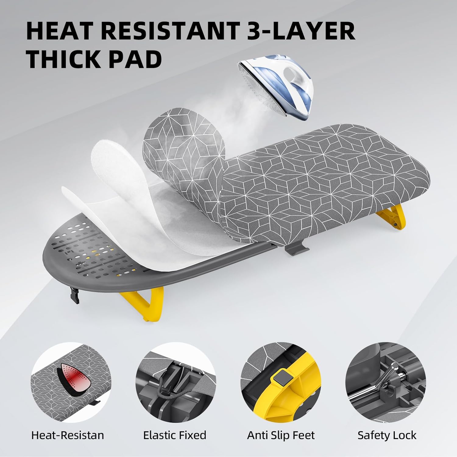 - [Fashionable and Sturdy] With anti-slip feet and safety lock, the table top ironing board provides amazing stability during ironing. In addition, the unique feet design brings a modern and fashionable appearance for our tabletop ironing board small.