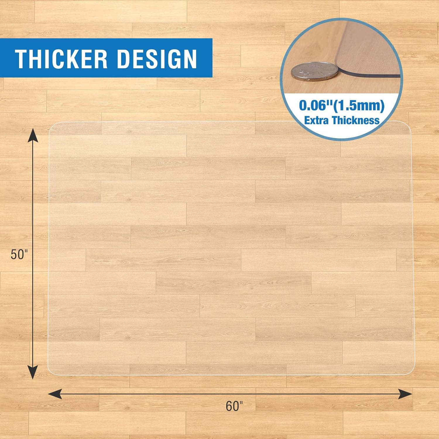 - Thicker for Enhanced Durability: At 0.06 inches (1.5mm), FUNMAT chair mat is thicker than most standard PVC mats, providing extra protection against wear and tear while ensuring long-lasting performance.