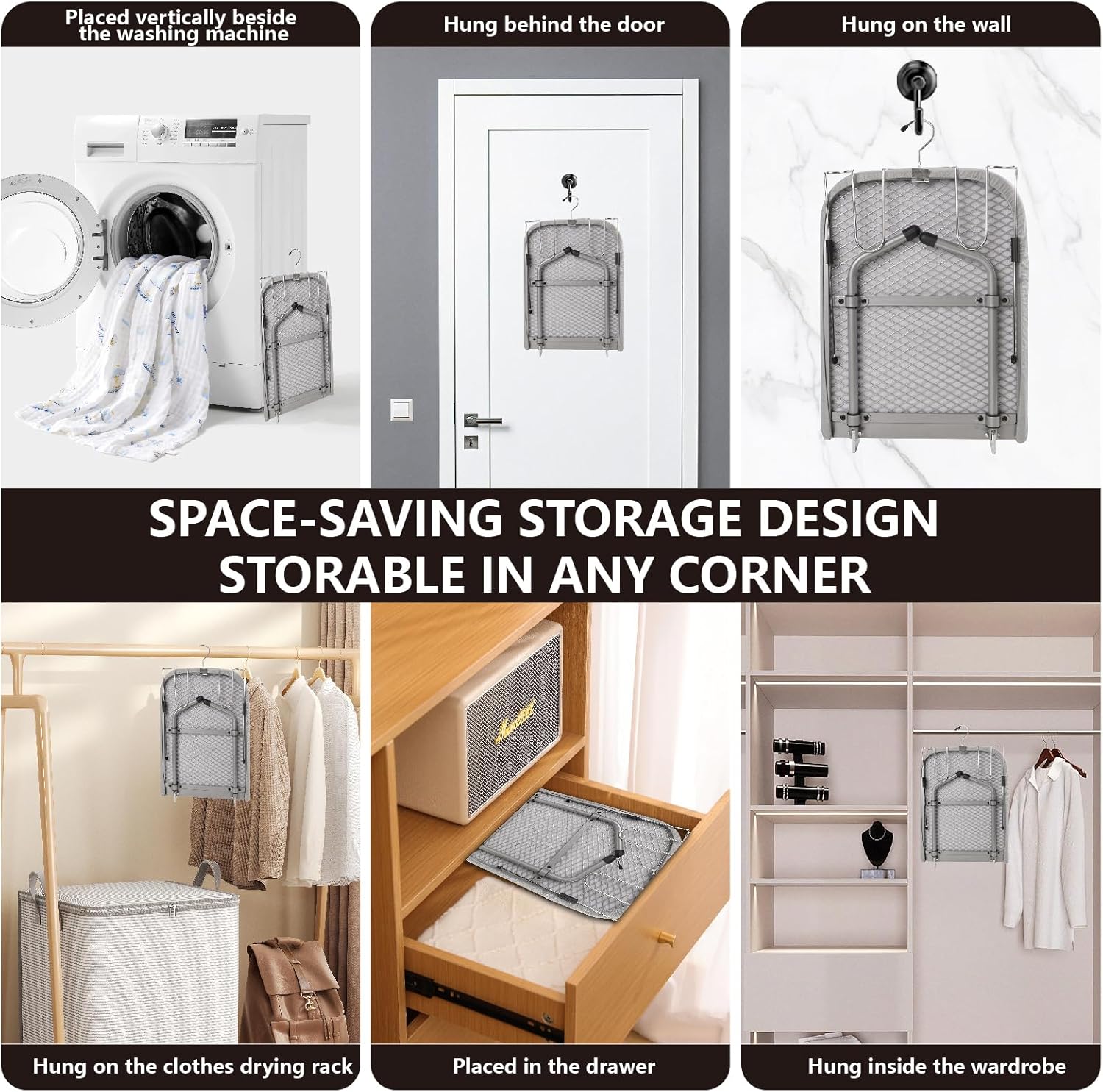 - 【Space-Saving & Ready to Use】This compact ironing board opens in seconds—no tricky slots or awkward locking mechanisms. Just unfold and start ironing. Stores almost anywhere, perfect for closets, behind doors, or under beds