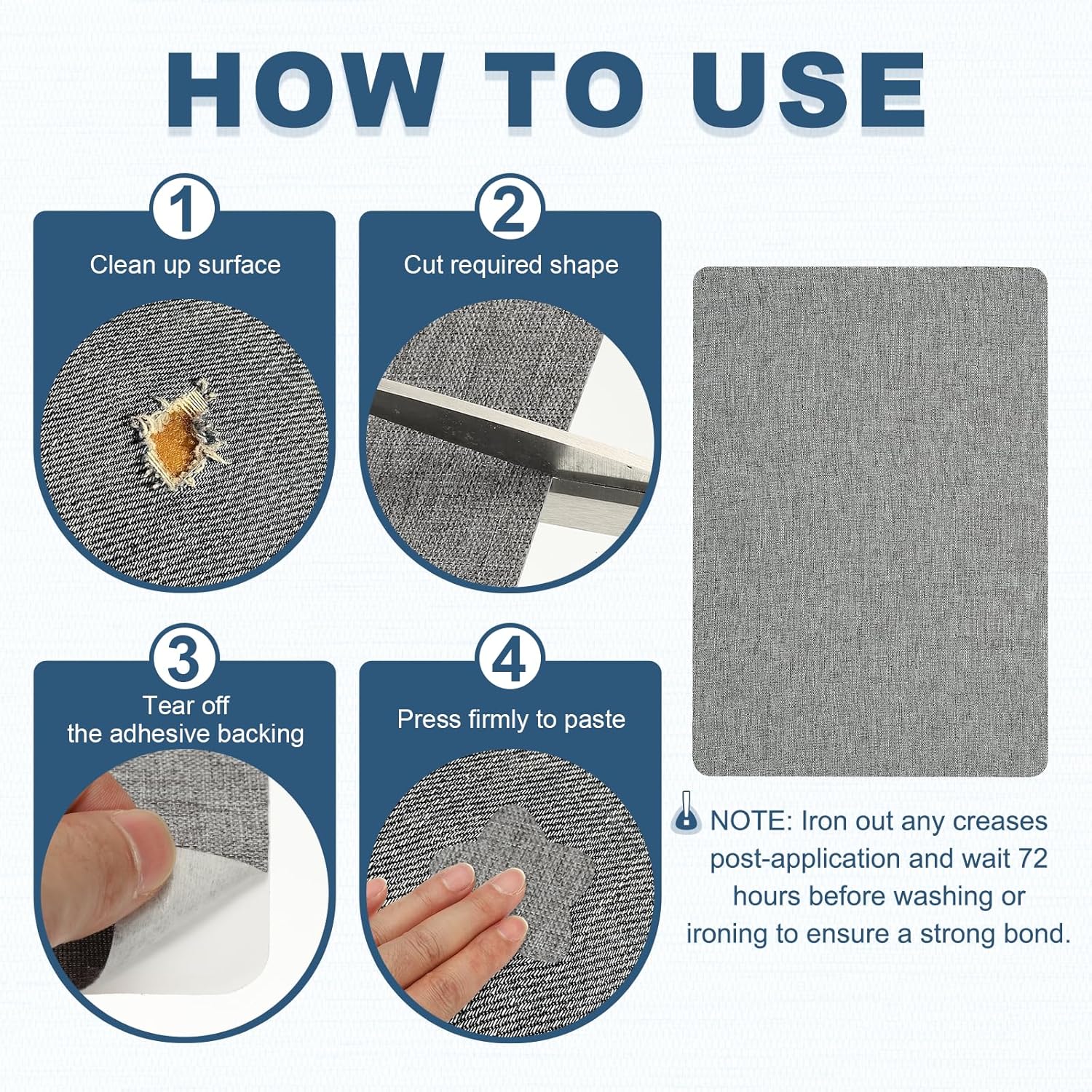 - Advantage: Our fabric repair patch tape is crafted from durable linen fabric, featuring an easy peel-and-stick design with a soft touch. Fabric patches are resistant to pilling and shrinking, machine washable for multiple uses while retaining its adhesive qualities.