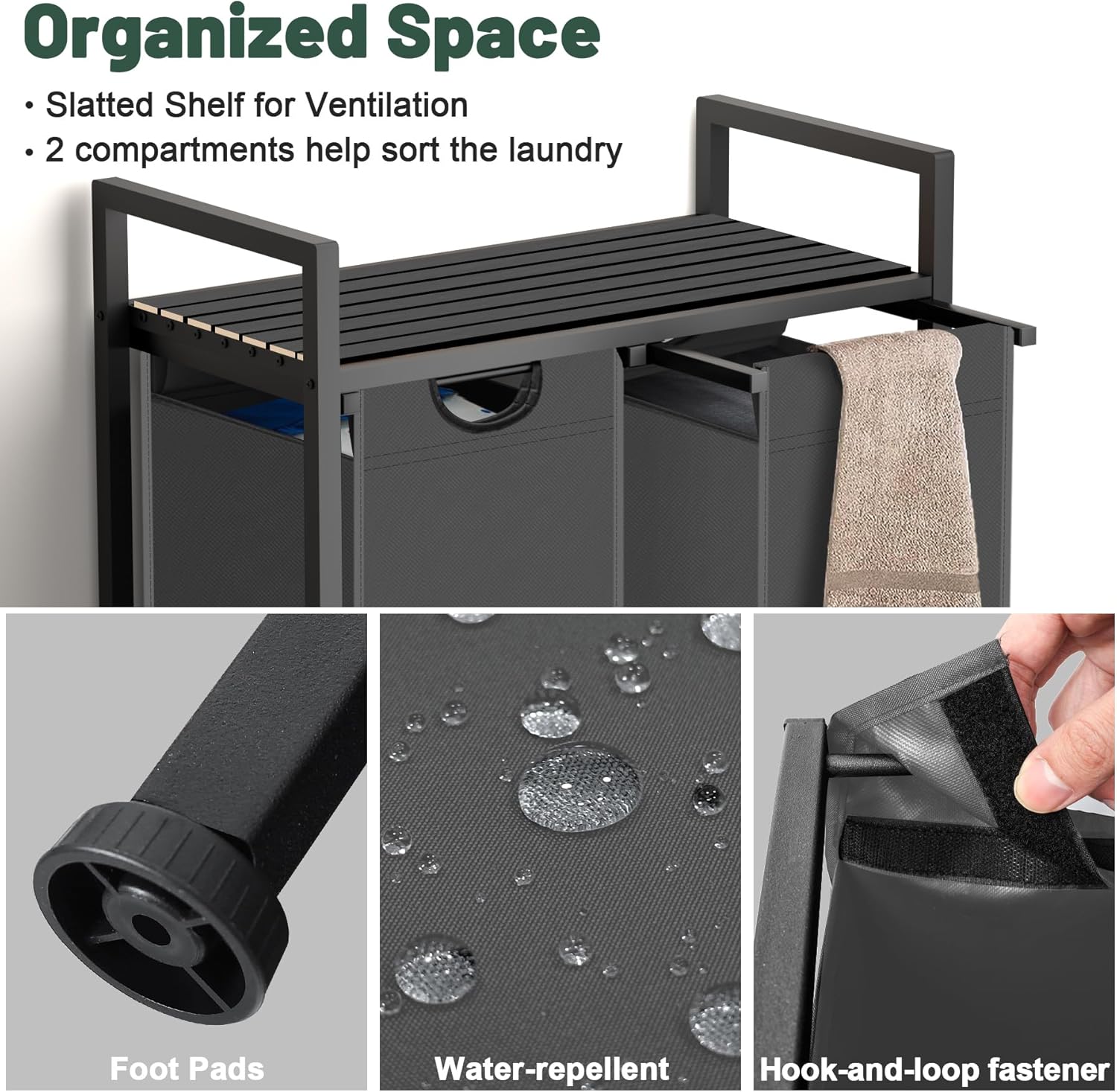 - Laundry Hamper with Shelf - The laundry basket is equipped with a top partition, provides extra space to organize used items, detergents, fabric softeners or toiletries, while its slatted design allows air to flow through for good ventilation, keeping your laundry odor-free. It can be used as decoration.
