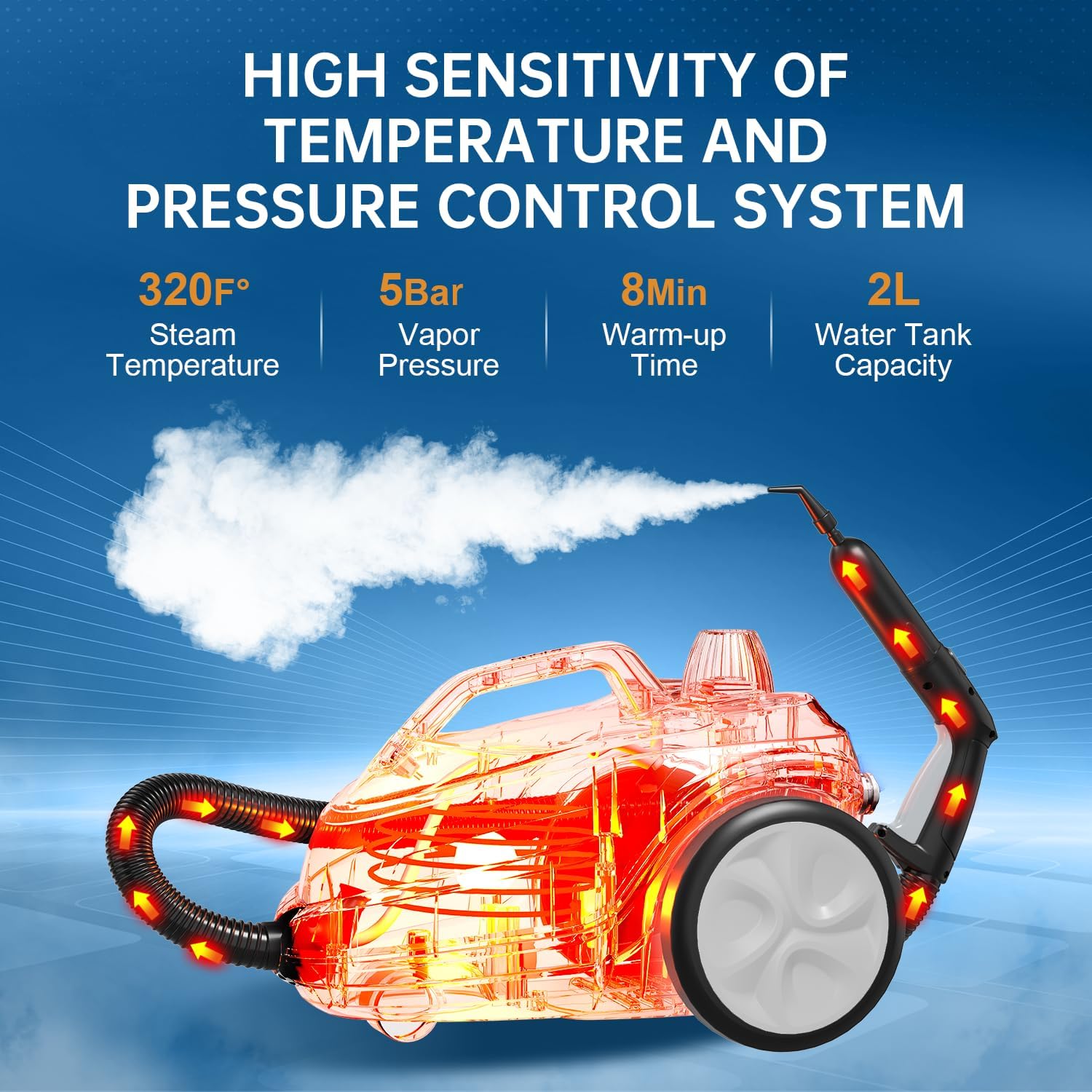 - MULTIFUNCTIONAL APPLICATIONS: Our steam cleaner is a versatile solution that adapts to every aspect of your daily life. You can rely on it to clean floors, kitchens, tiles, grout, sofas, clothes, toilets, bathrooms, kitchen sinks, appliances, range hoods, windows, grills, upholstery, cars and more.
