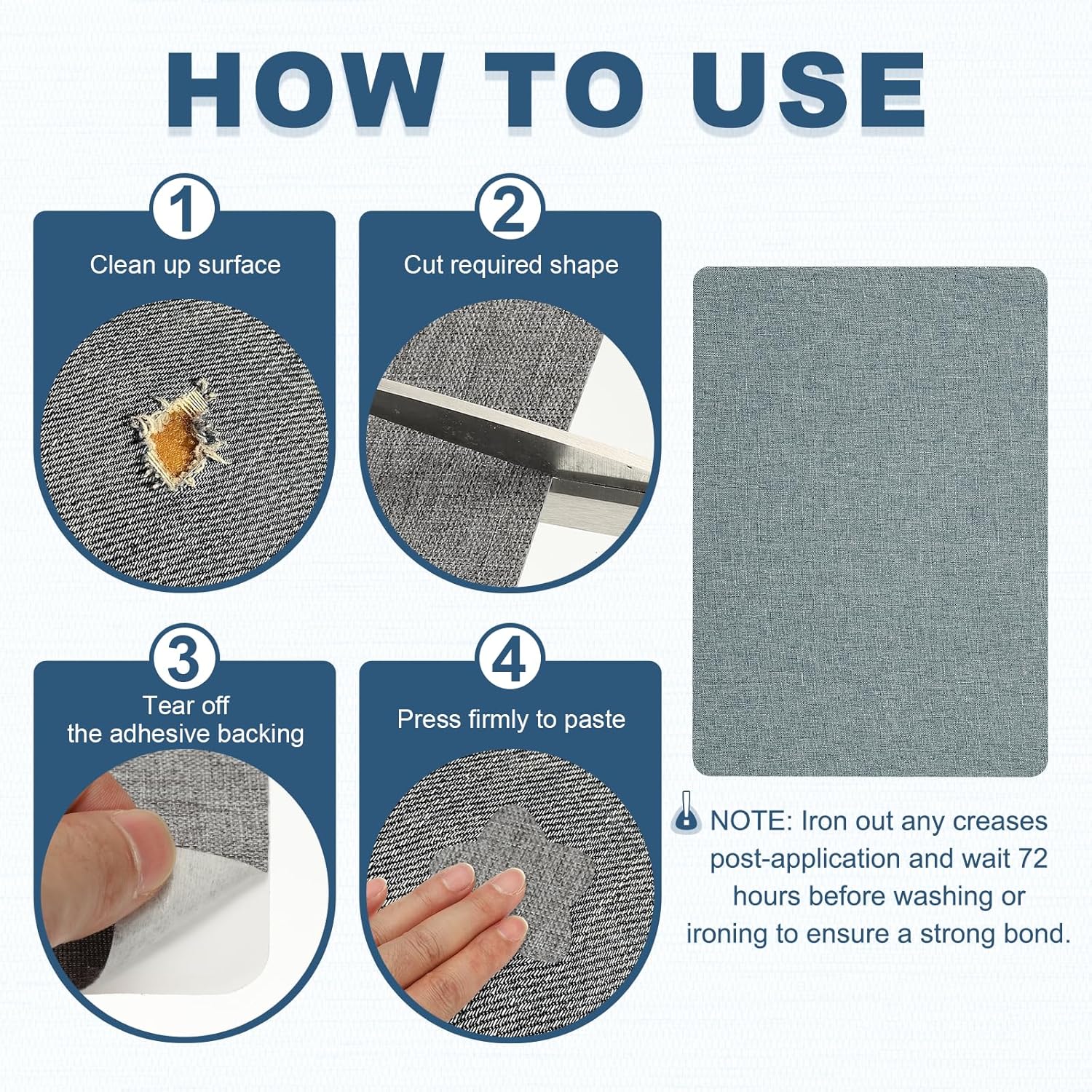- Advantage: Our fabric repair patch tape is crafted from durable linen fabric, featuring an easy peel-and-stick design with a soft touch. Fabric patches are resistant to pilling and shrinking, machine washable for multiple uses while retaining its adhesive qualities.