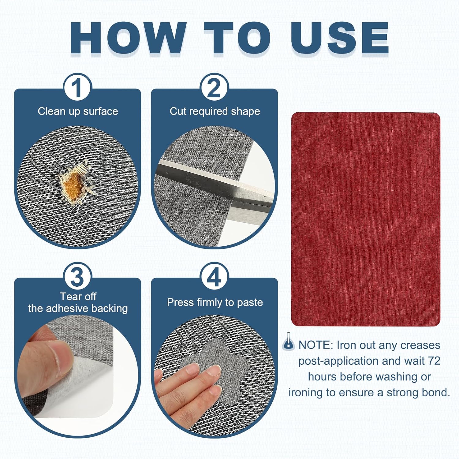 - Advantage: Our fabric repair patch tape is crafted from durable linen fabric, featuring an easy peel-and-stick design with a soft touch. Fabric patches are resistant to pilling and shrinking, machine washable for multiple uses while retaining its adhesive qualities.