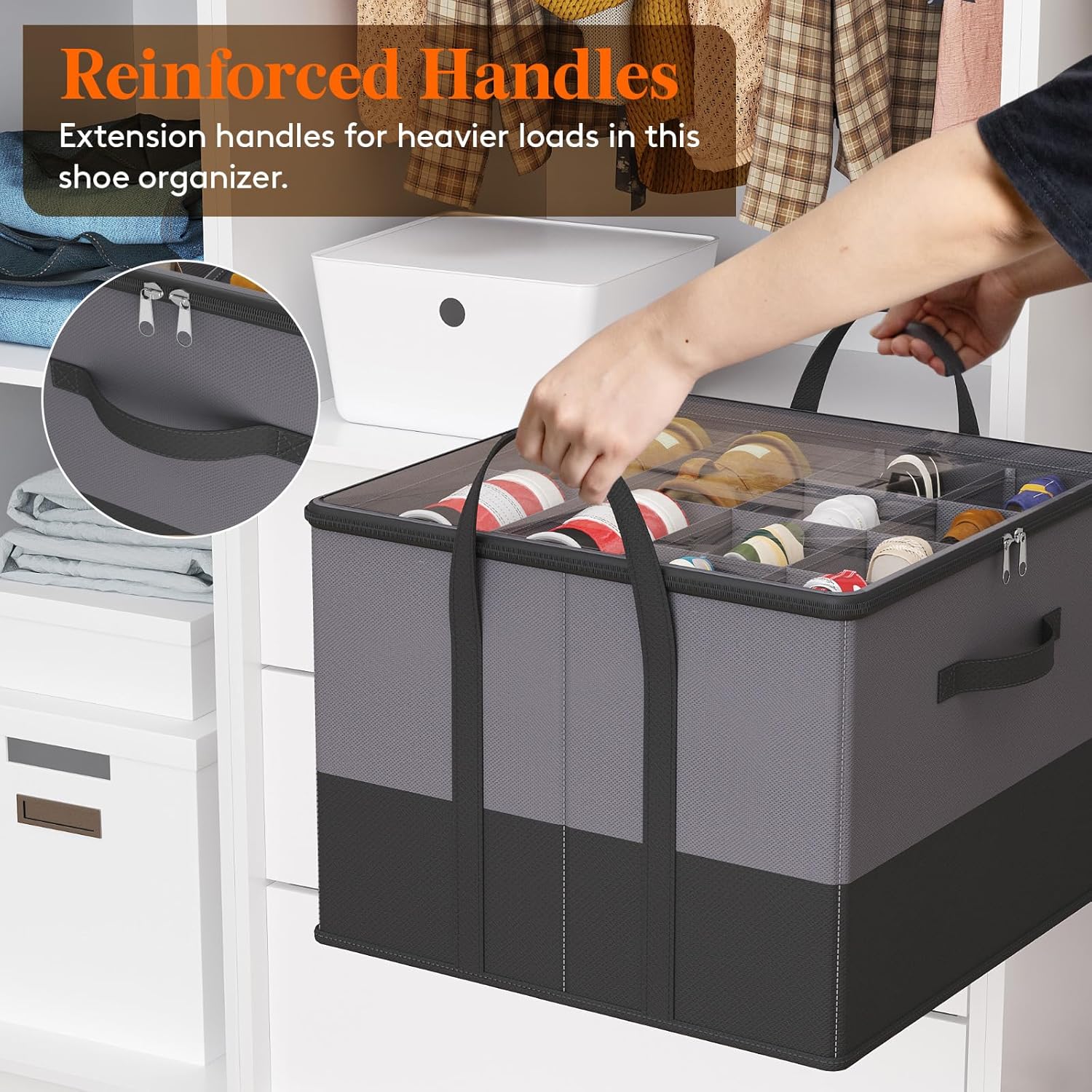 Lifewit Shoe Storage Organizer for Closet Fits 12-16 Pairs, Fabric Large Shoe Box Storage Containers with Clear Cover, Foldable Bins Fit for Boots Sneakers 17"(L) x 17"(W) x 12.5"(H) Gray and Black