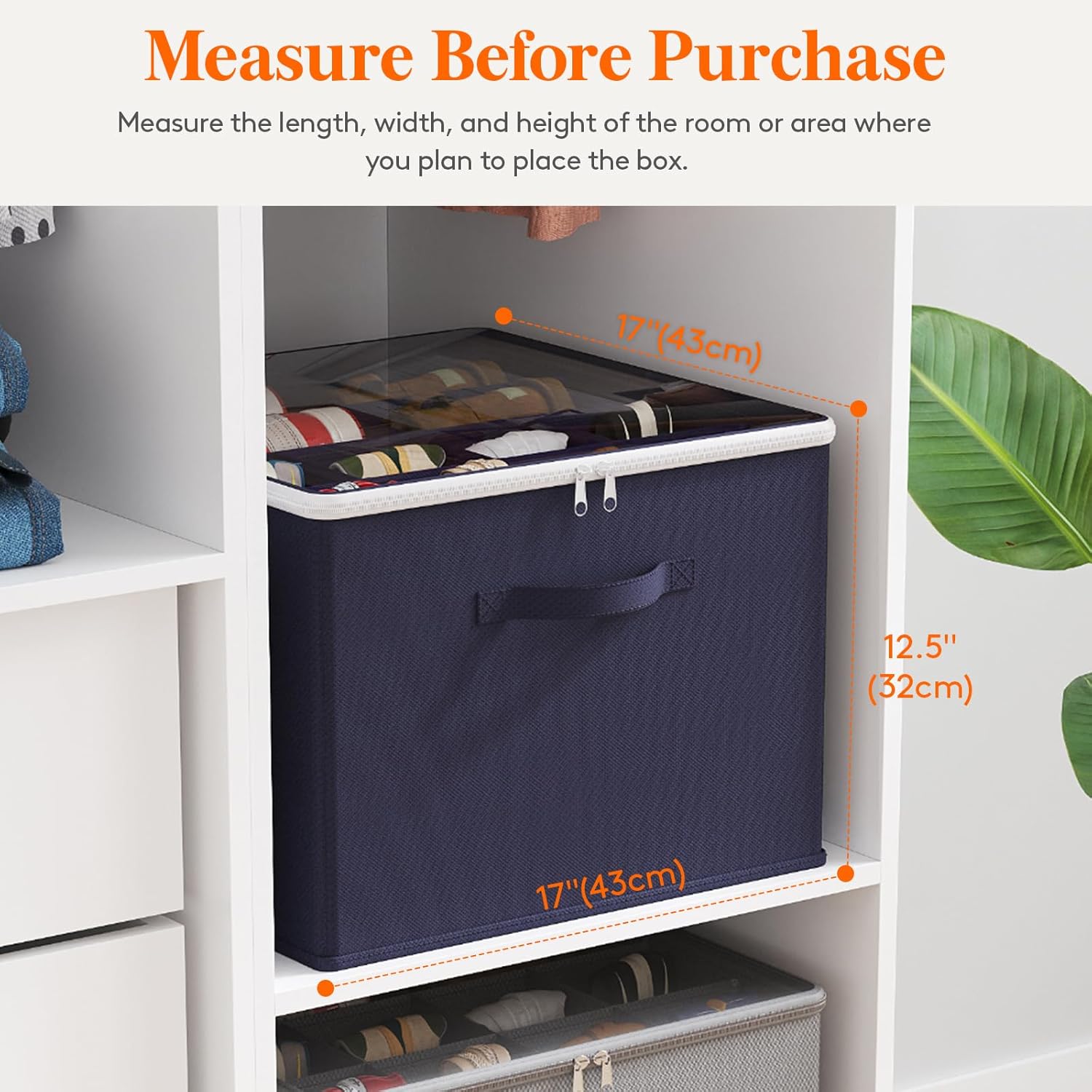 - Spacious Capacity: This 17"x17"x12.5" (43x43x32cm) shoe organizer holds 12-16 pairs. It features 8 small (11x11cm) and 4 large (21x14cm) compartments for all footwear types. Measure the length, width, and height of the room where you plan to place the box