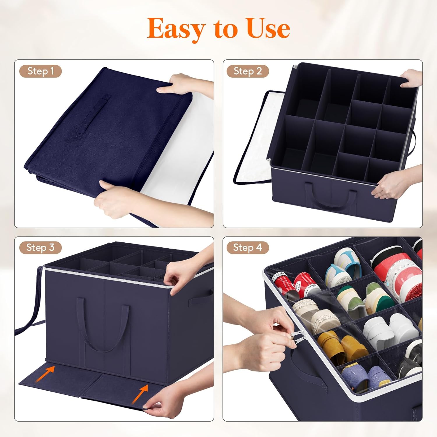 - Easy to Access: Featuring a transparent dust cover, this shoe storage organizer ensures easy identification and protection of your shoes. The durable double-sided zipper allows for smooth opening and closing, making it convenient to retrieve or store shoes.