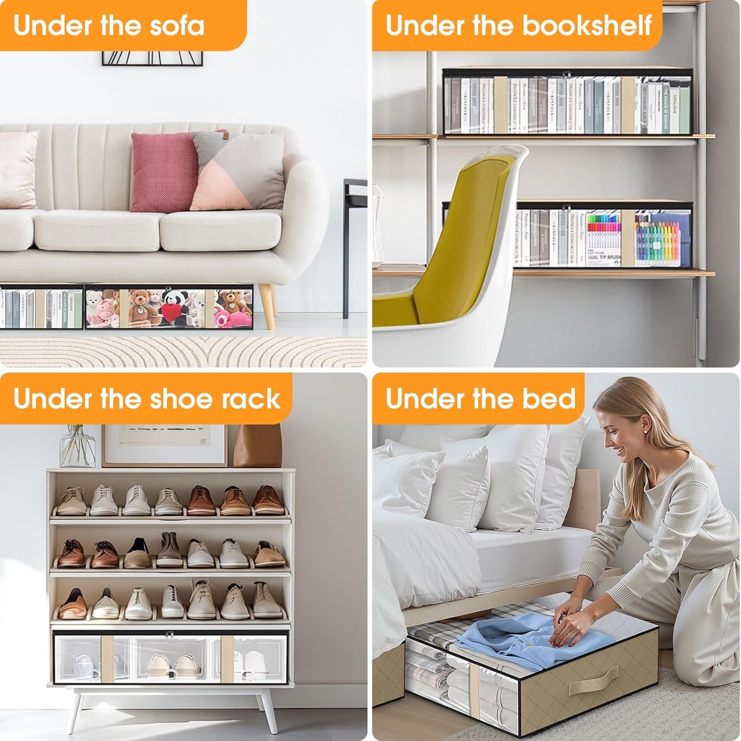 - Multifunctional Storage Organizer:StorageRight under bed storage containers for organizing fits perfectly under your bed. From blankets and pillows, to out-of-season clothes and shoes, to books! These storage bags have sturdy construction and can handle all types of storage needs