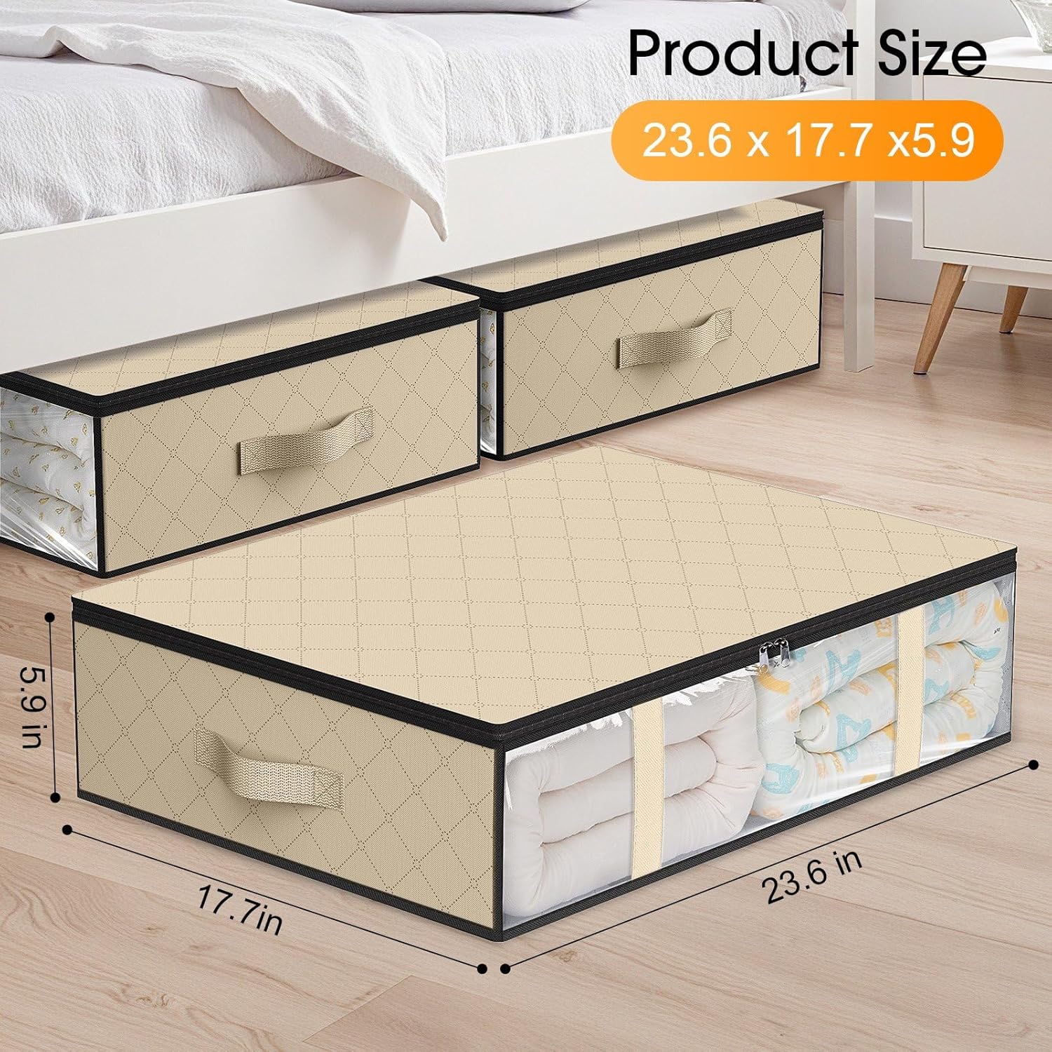 StorageRight Under Bed Storage Bins, 3-Pack 40L Foldable Fabric Storage Bags with Transparent Window, Breathable Organizer for Clothes/Blanket/Comforter/Quilts,Beige