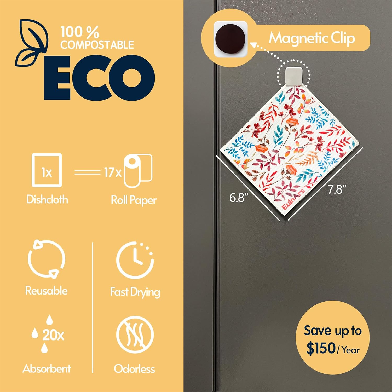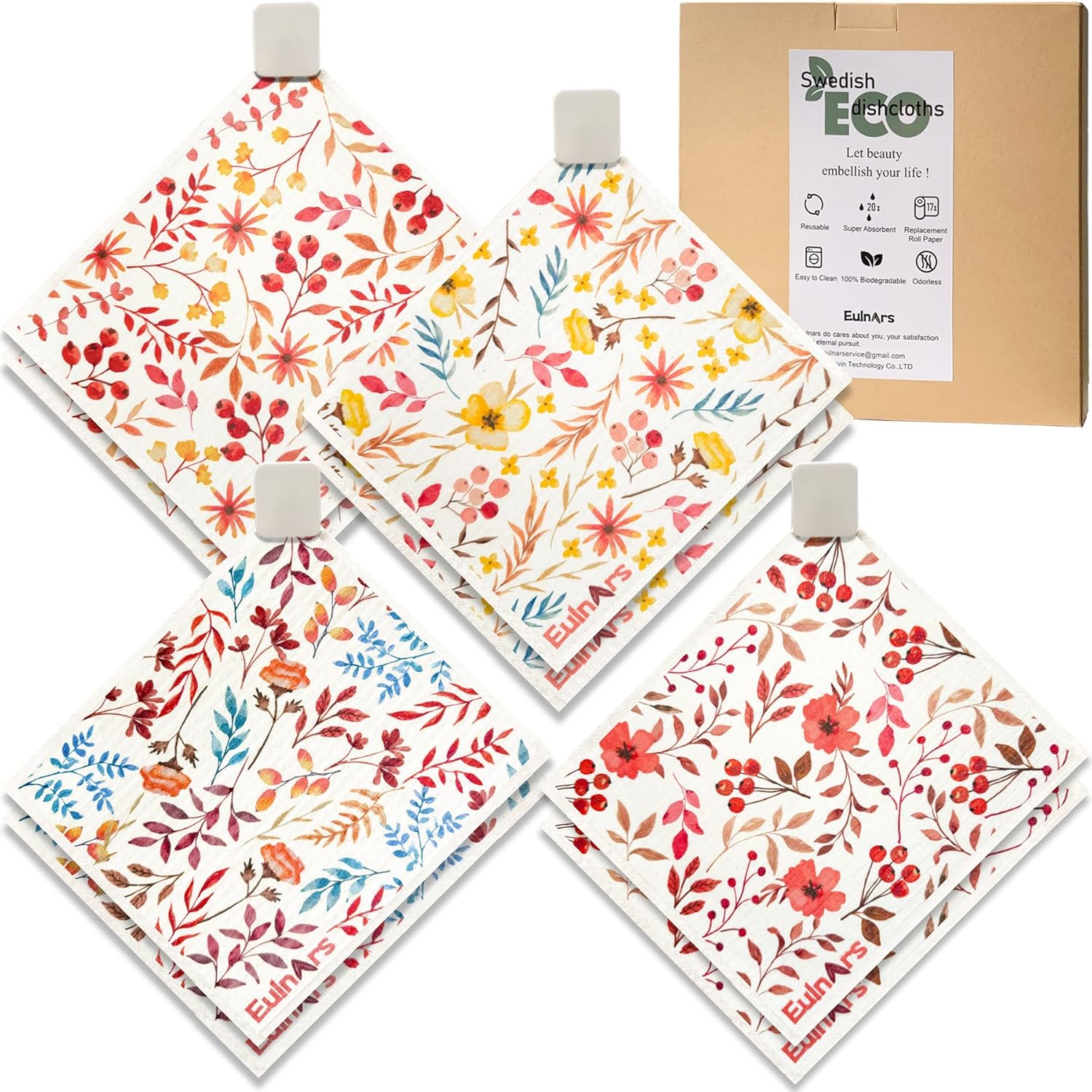 - Easy to Clean and Store: Our swedish dishcloths, measuring 7.8 x 6.8 inches, each set comes with 8 cellulose dish cloths in 4 styles, along with 2 self-adhesive clips, 1 magnetic clip, and 9 labeling tags. Customize storage for easy access, hanging them on walls, counters, or refrigerators to keep your kitchen organized