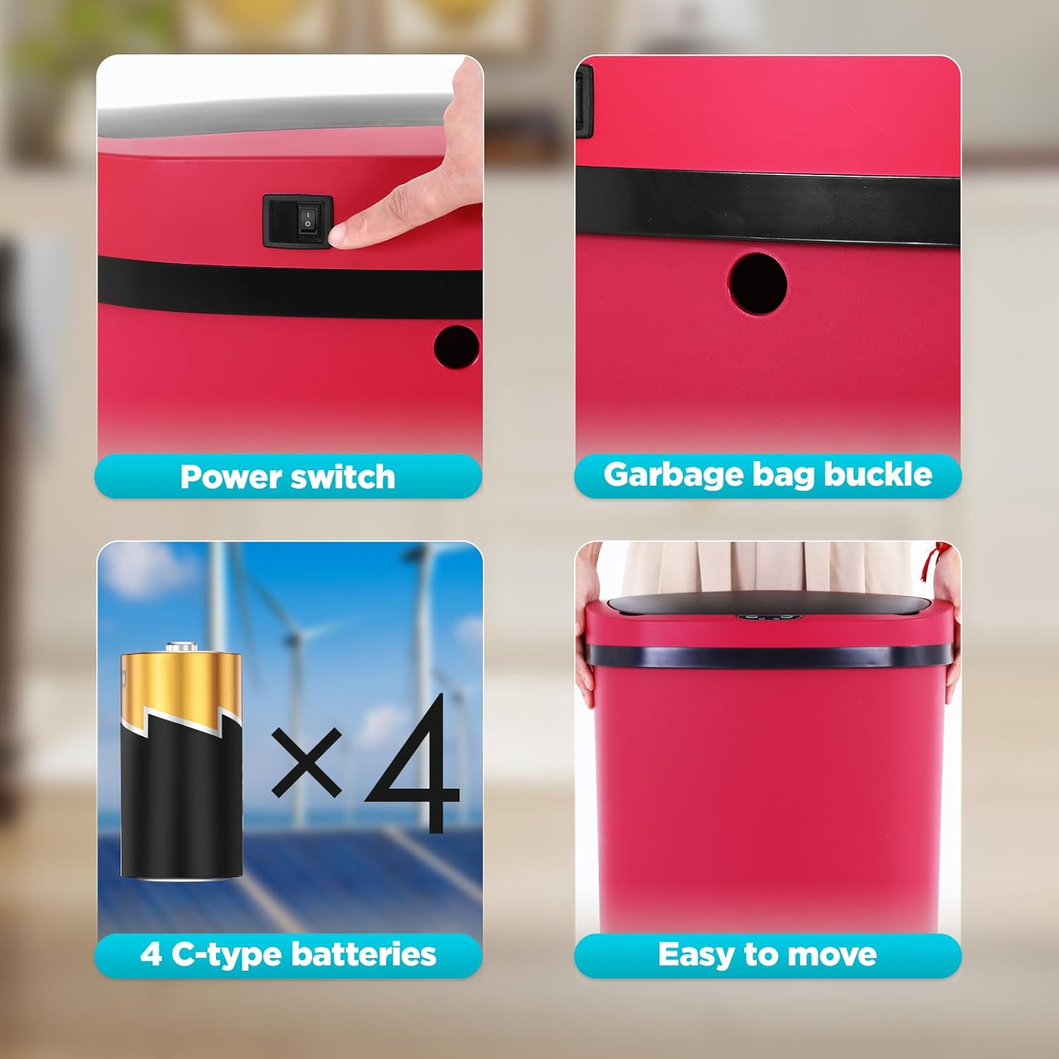 - Silent Operation: Designed with noise reduction in mind, our touchless trash bin operates quietly, offering a seamless experience in any setting, including bathrooms. The gentle opening and closing mechanism ensures a peaceful environment for you and your family.