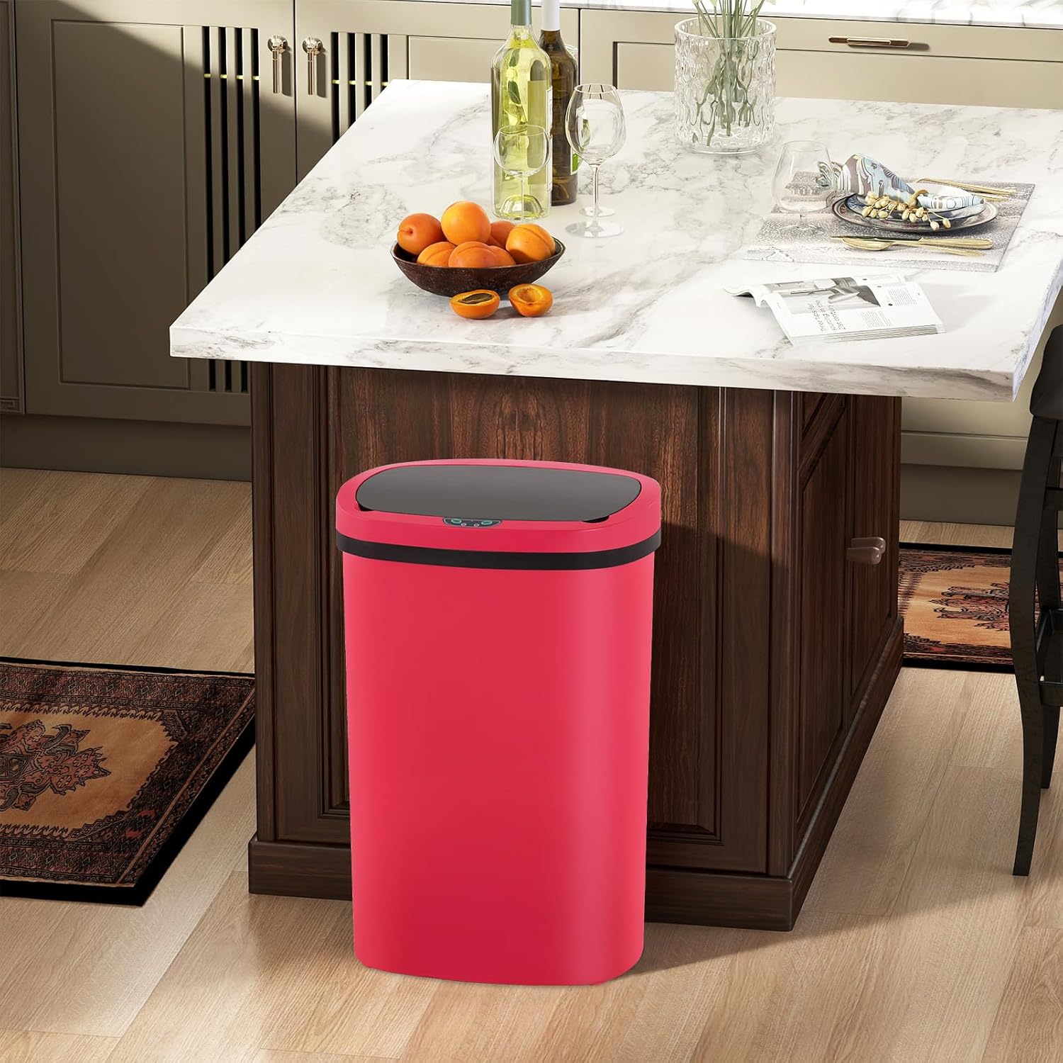 Automatic Motion Sensor Bathroom Trash Can with Lid, 13 Gallon Touchless Trash Bin, Smart Dog Proof Garbage Can, Touch Free Waste Basket for Toilet, Office, Bedroom,Red,2