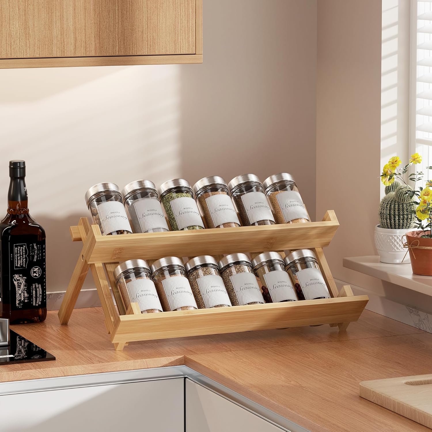 - No tools, No Assembly: Achieve an instant kitchen refresh—no assembly required. Unfold your new bamboo spice rack in seconds. Just pure, natural style that makes your kitchen feel instantly more welcoming and organized