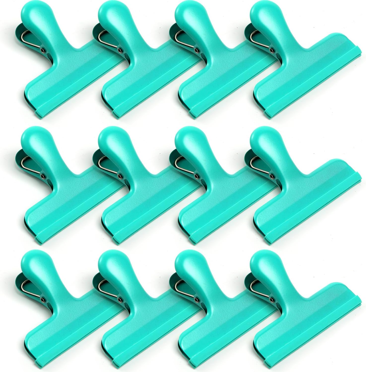 HOUSE AGAIN Chip Clips, 12 Pack Stainless Steel Chip Bag Clips Covered with Silicone, NO More Sharp Edges, Bag Clip for Food Packages, Heavy Duty for Kitchen and Office, Green