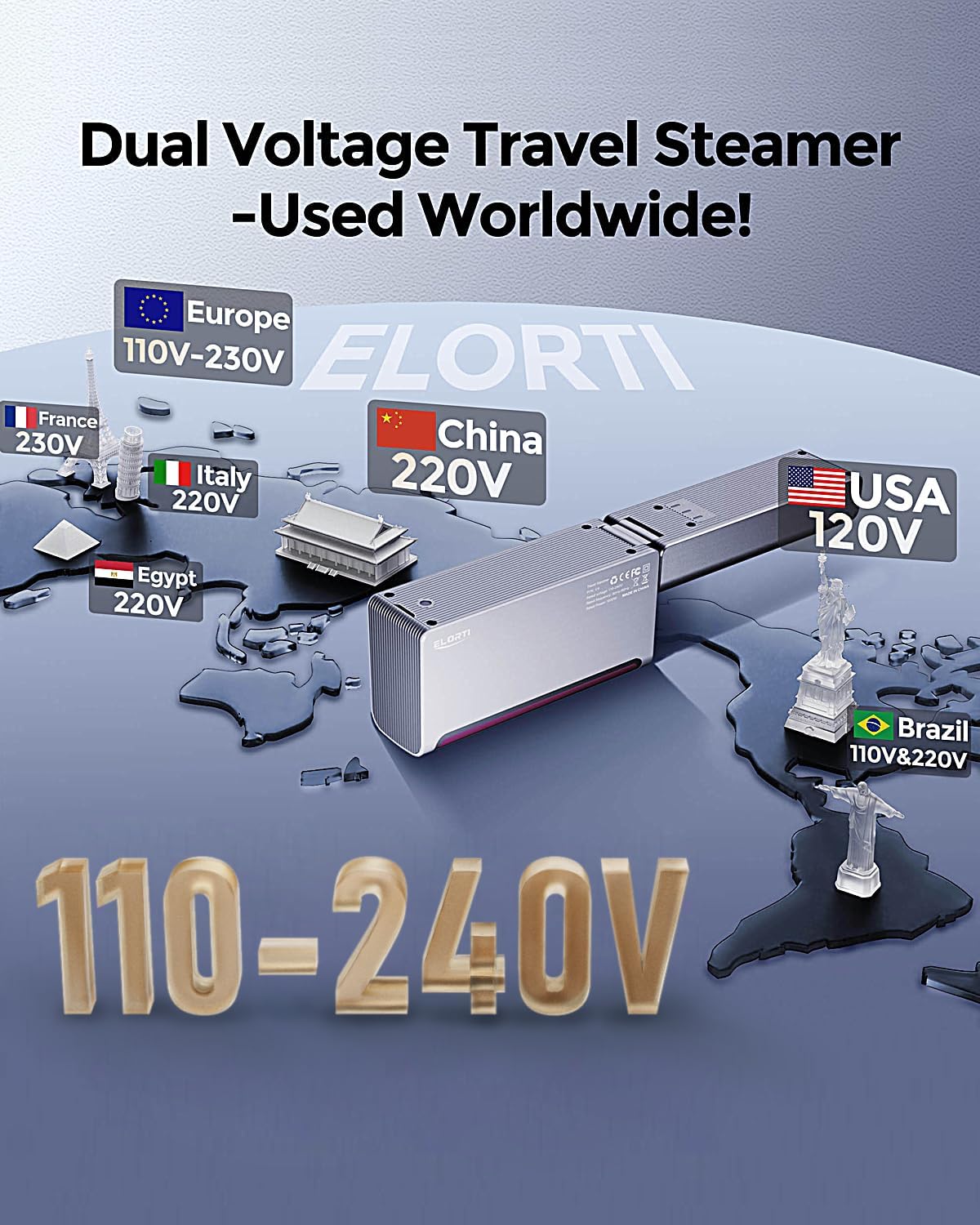 - Travel Steamer Dual Voltage 110-220V: Our dual voltage steamer automatically adapts to global power standards. Ensures reliable, consistent steam for suits, dresses, and delicate fabrics, perfect for Europe and international business trip. 【Note】Operates at 10A; if using a travel adapter abroad, make sure it’s rated for 10A, or it won’t work