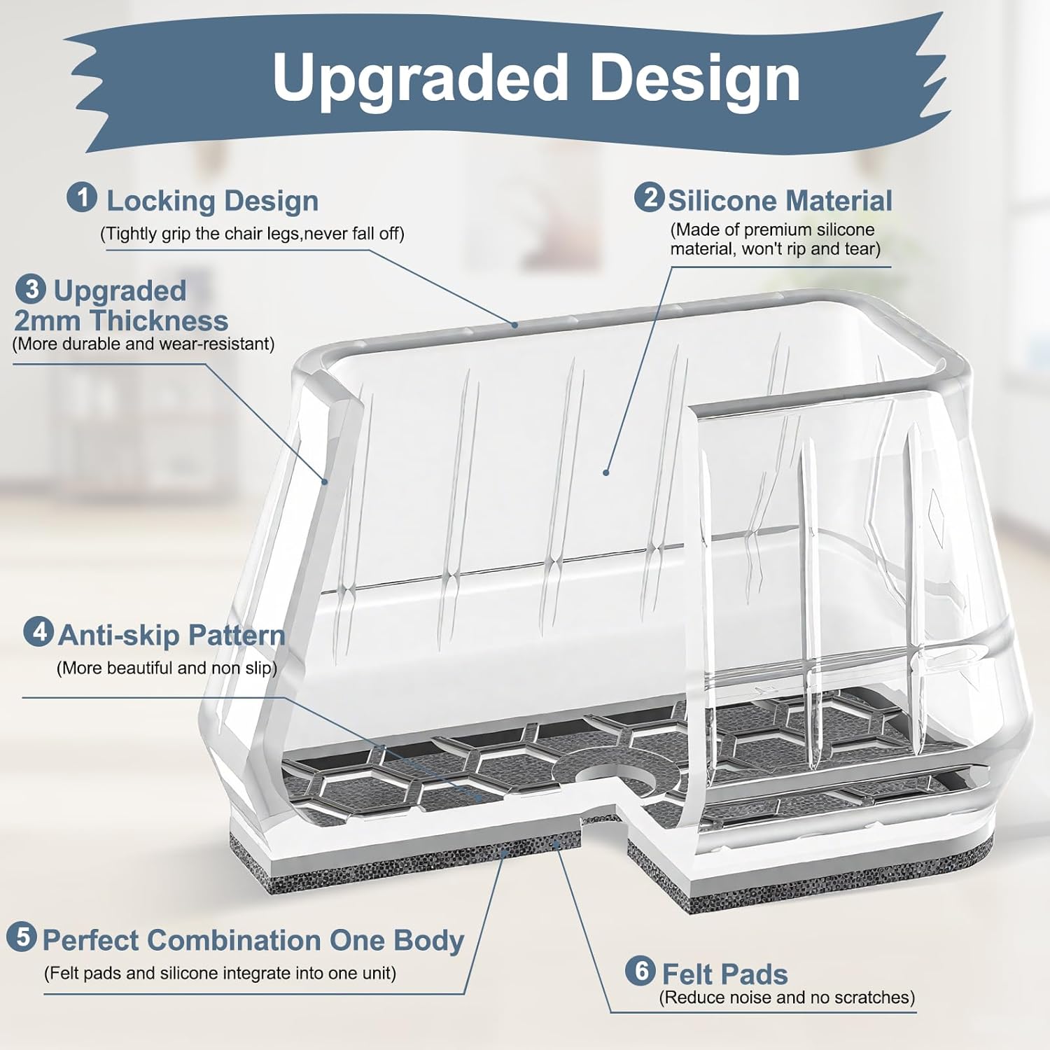 - ✅【Comprehensive Improvement】The chair leg floor protectors use special technology to combine the felt and silicone into one inseparable piece, which prevent the felt pad from falling off during use. We chose the premium quality silicone material which bonds the felt pad better, and won't tear easily when stretched.